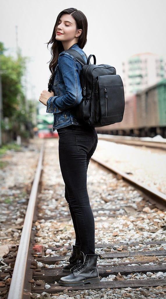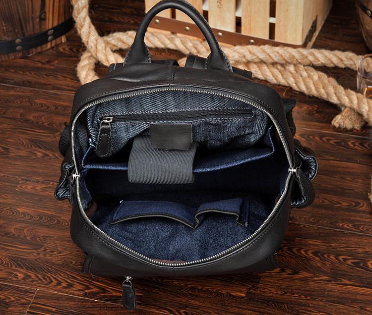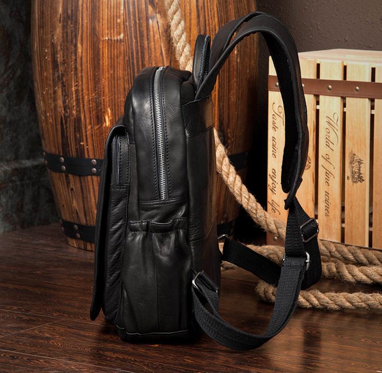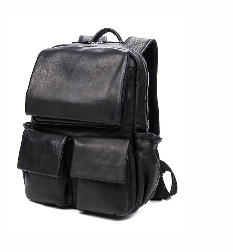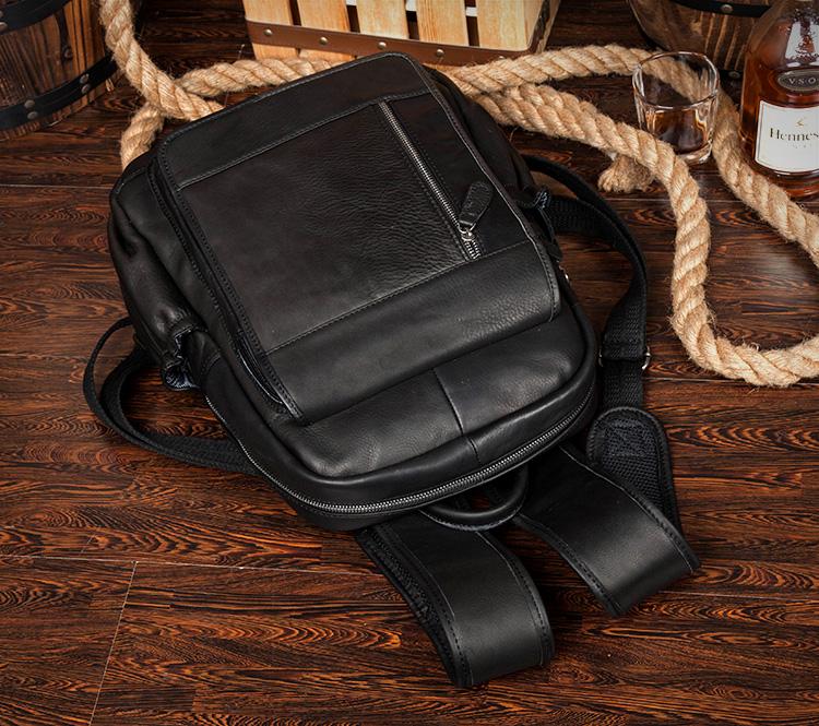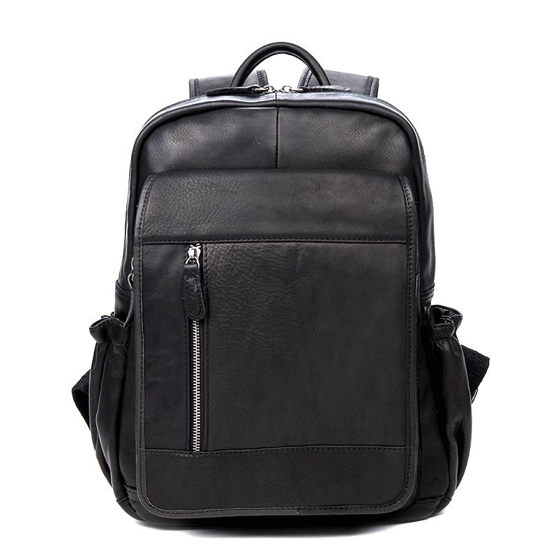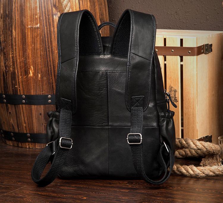 Design: Black Business Mens Leather 14-inch Computer Backpacks Cool Travel Backpacks School Backpack for men