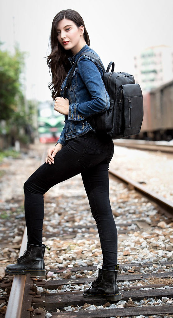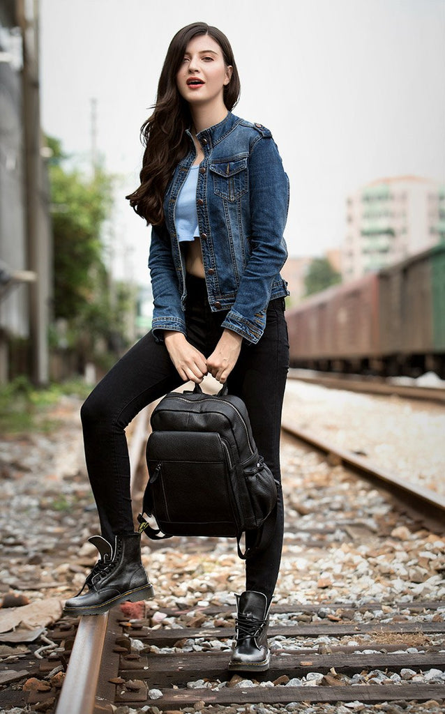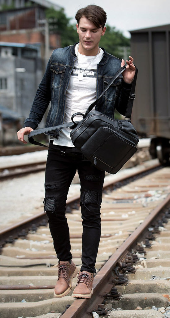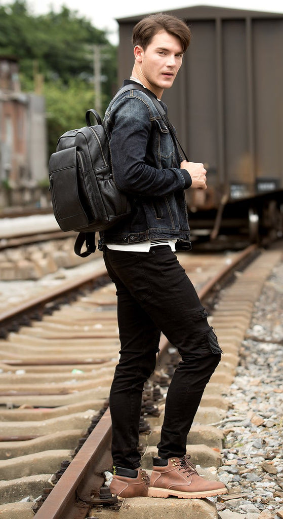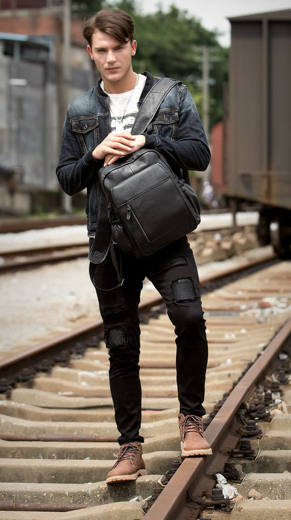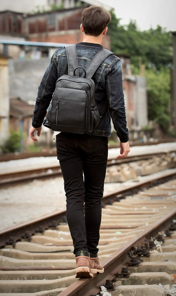 Style: Black Business Mens Leather 14-inch Computer Backpacks Cool Travel Backpacks School Backpack for men