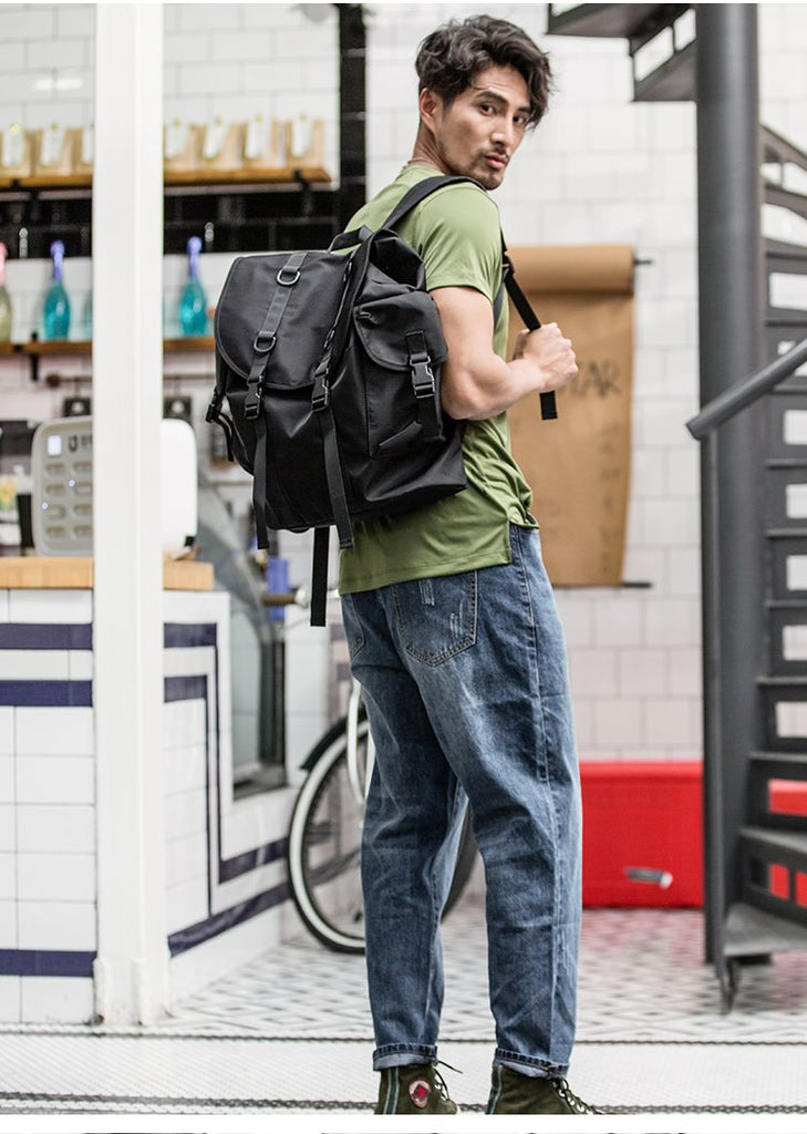 Style: Black Casual Mens Nylon 15 inches Travel Backpacks Laptop Backpack College Bag for men
