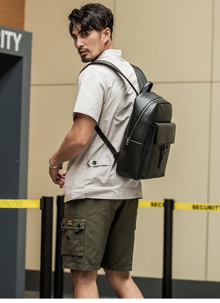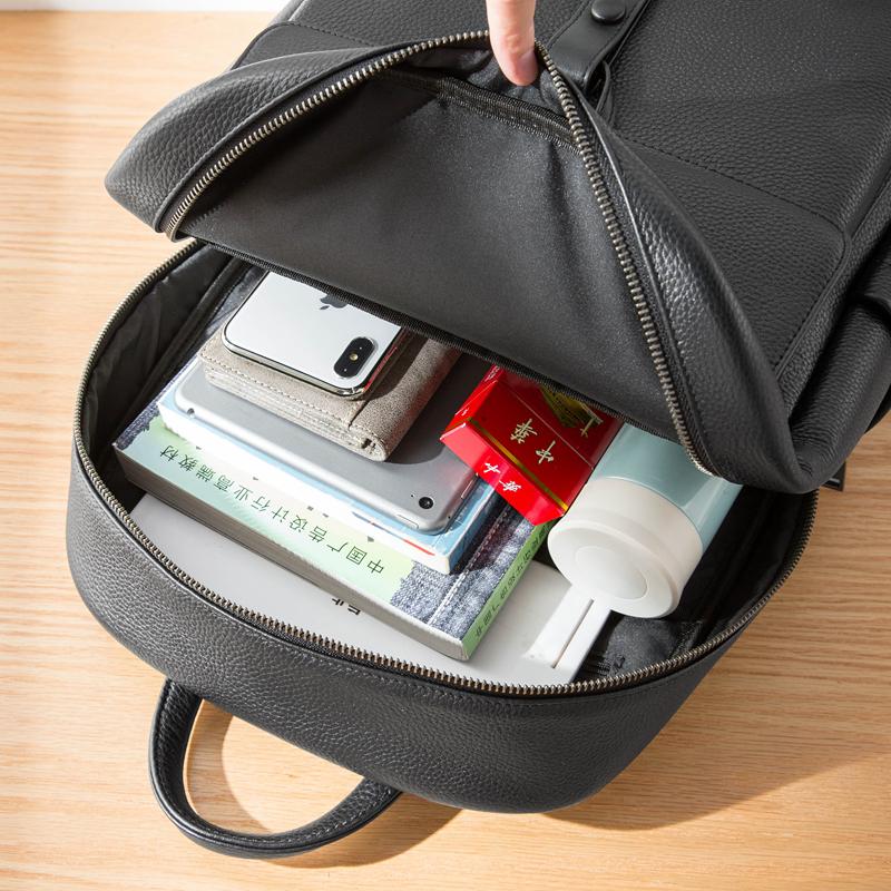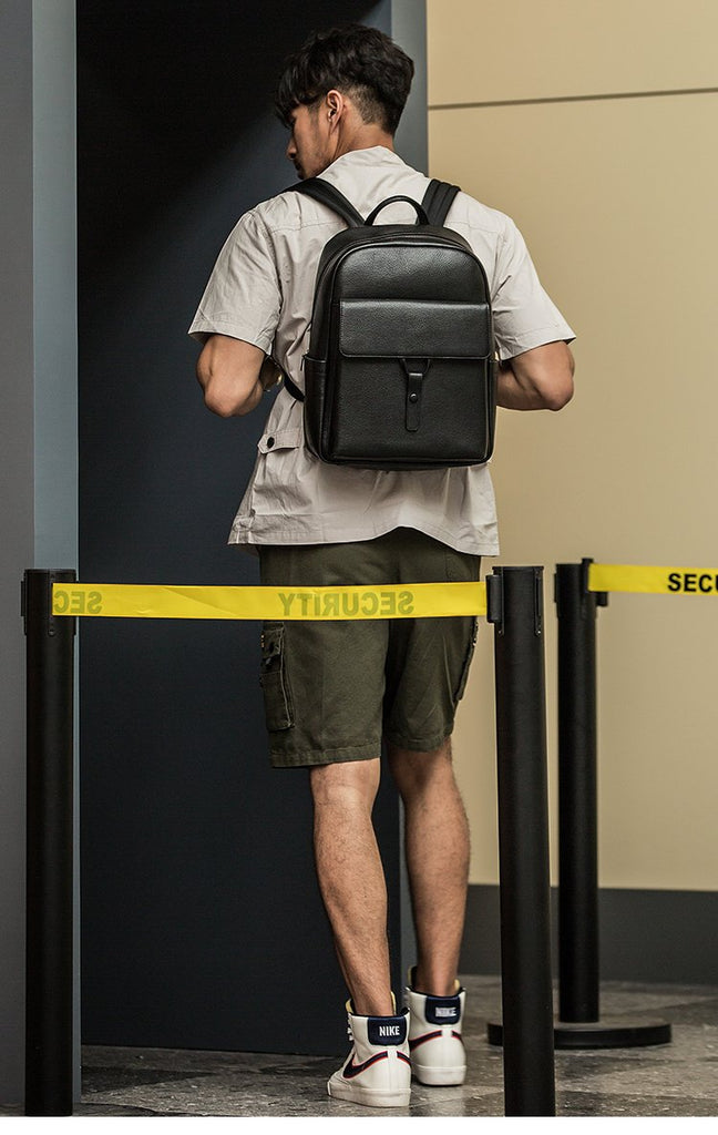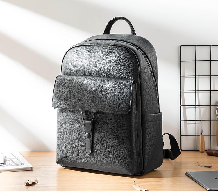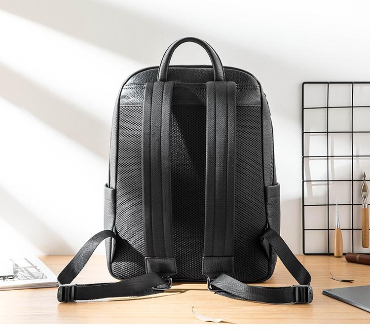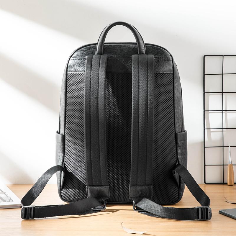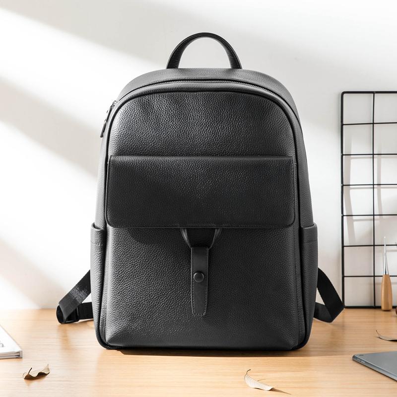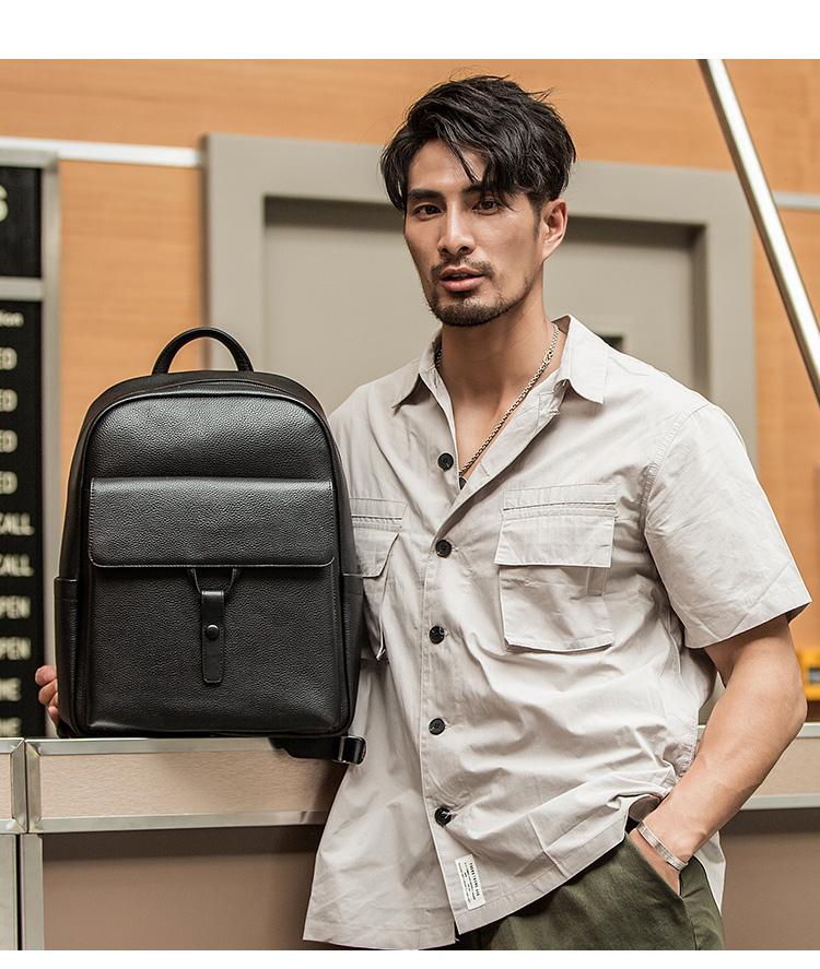 Design: Black Cool Mens Leather 15-inch Multifunction Backpacks Travel Backpacks Laptop Backpack for men