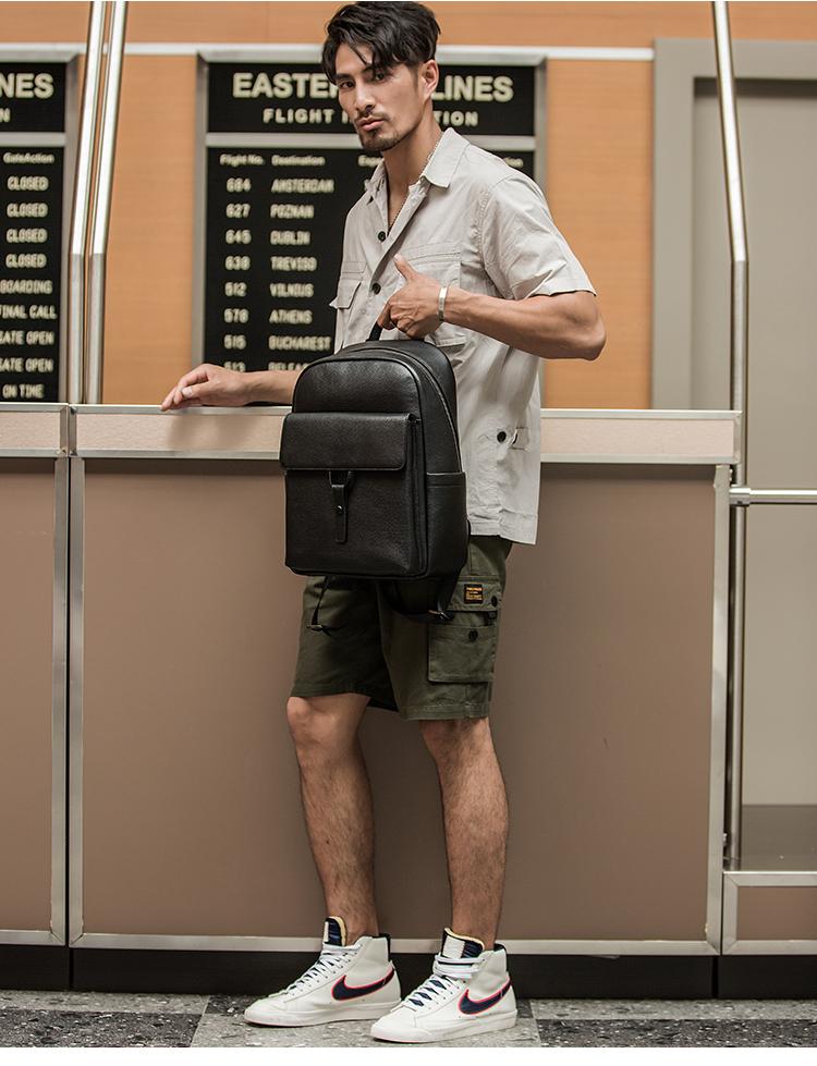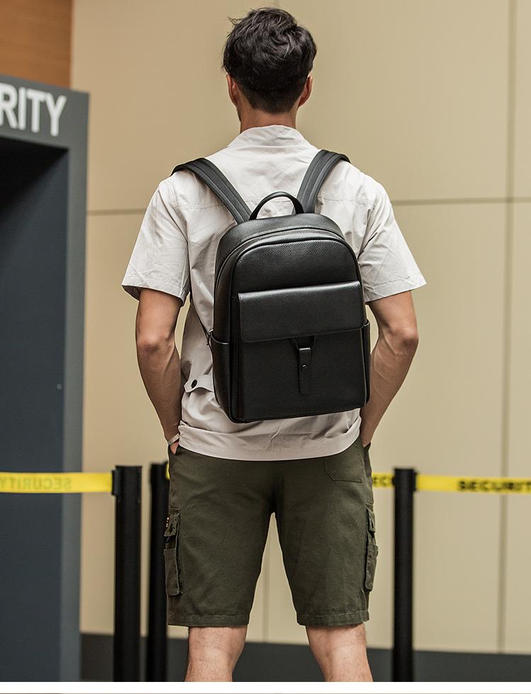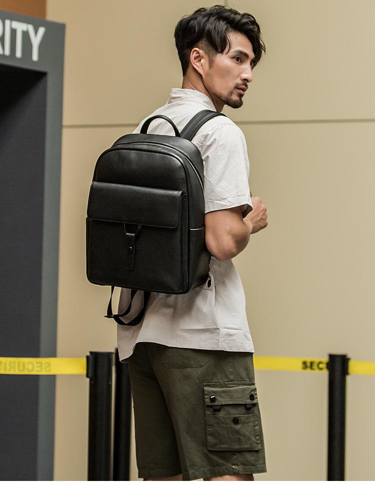 Cool Black Mens Leather School Backpacks Travel Backpacks 15-inch Laptop Backpack for men