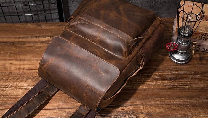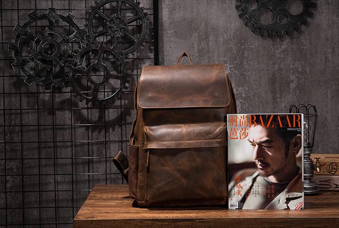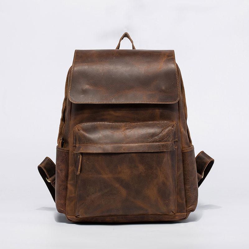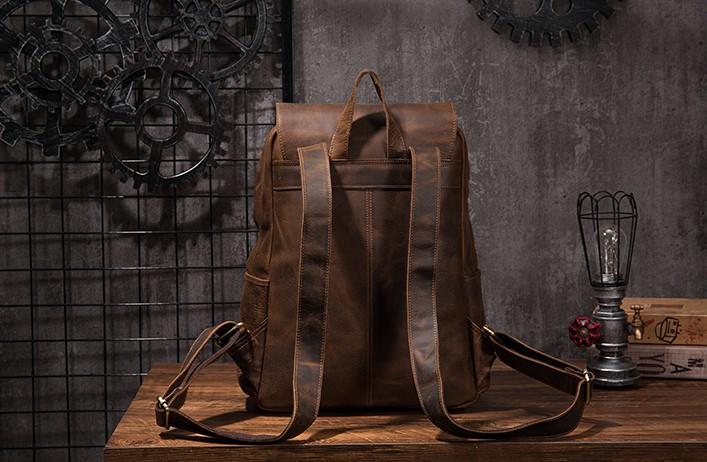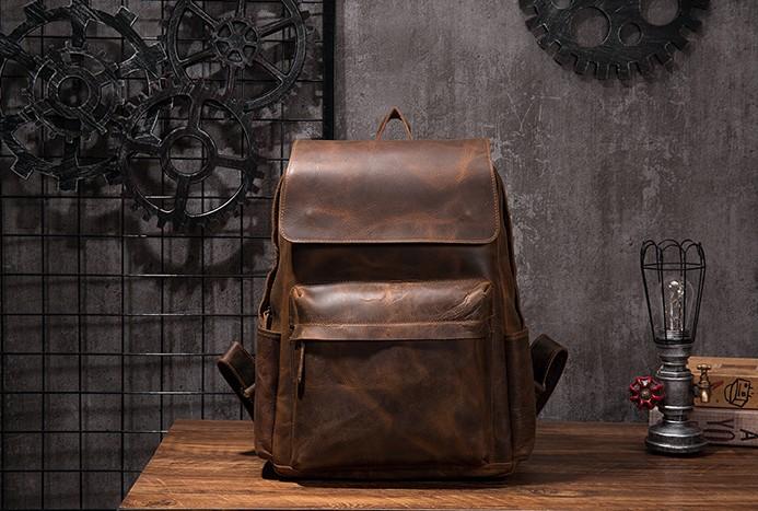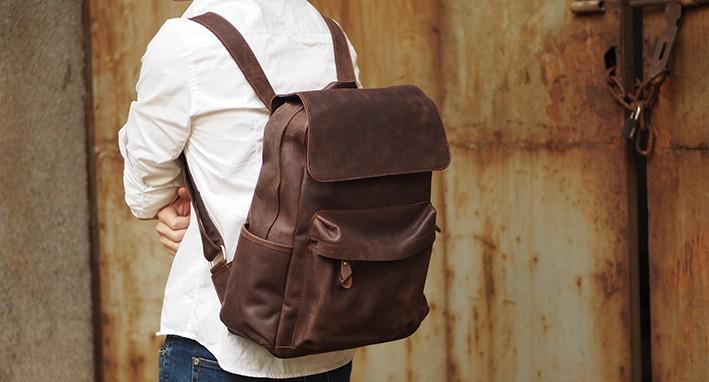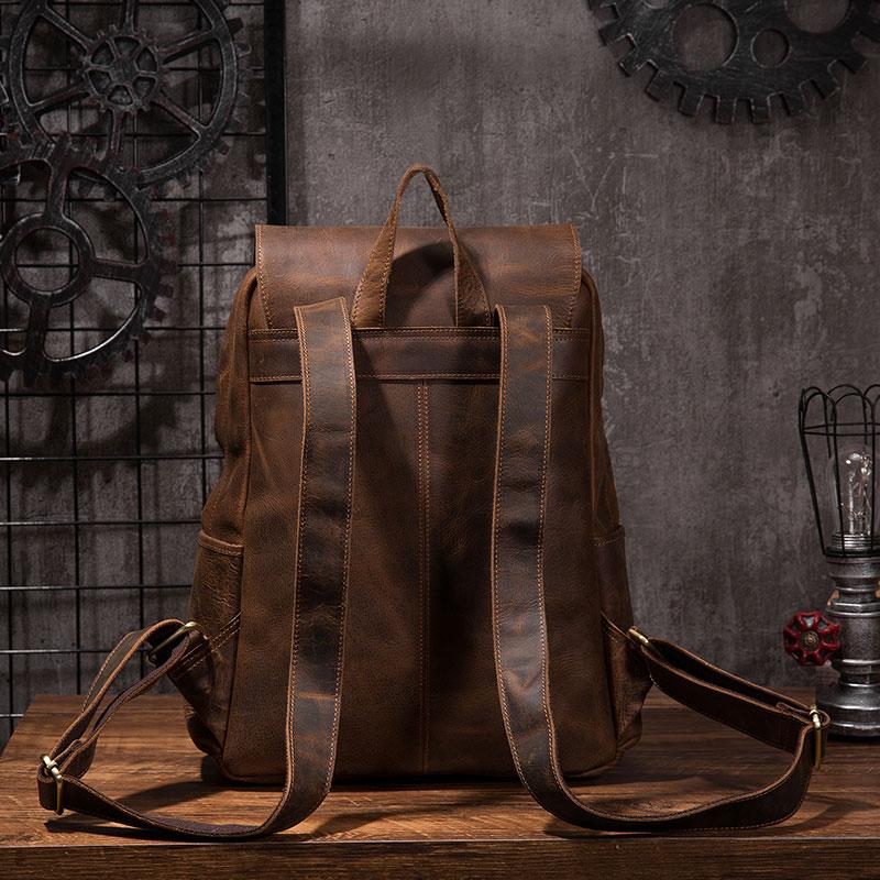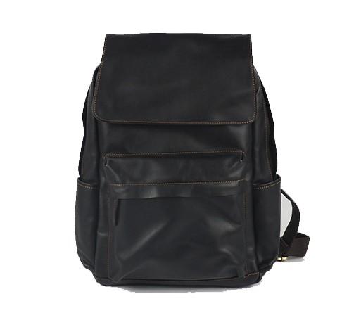 Design: Black Cool Mens Leather Backpack Travel Backpack Leather 15inch Laptop Backpack for Men