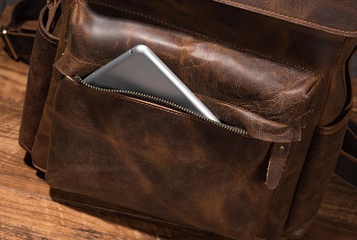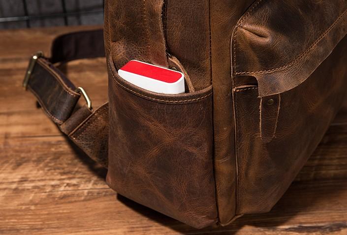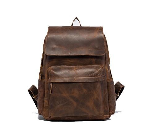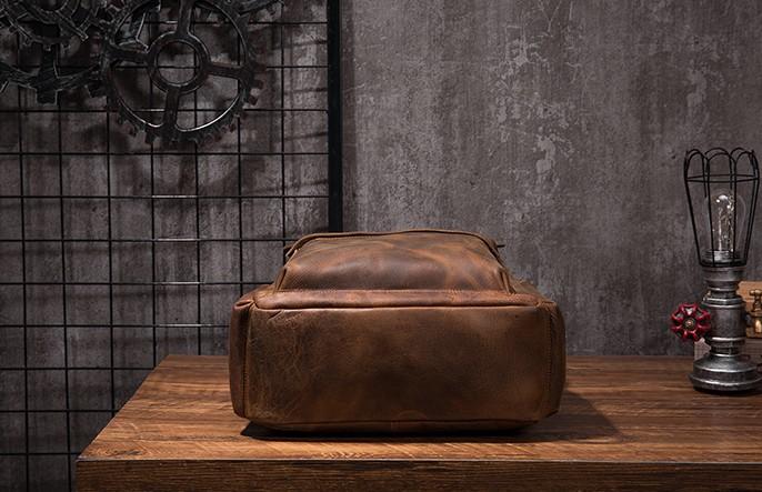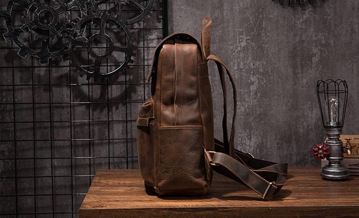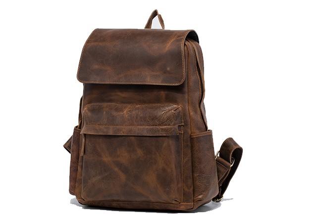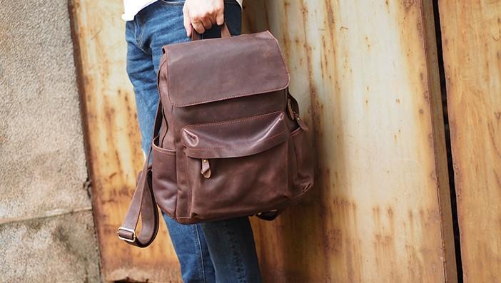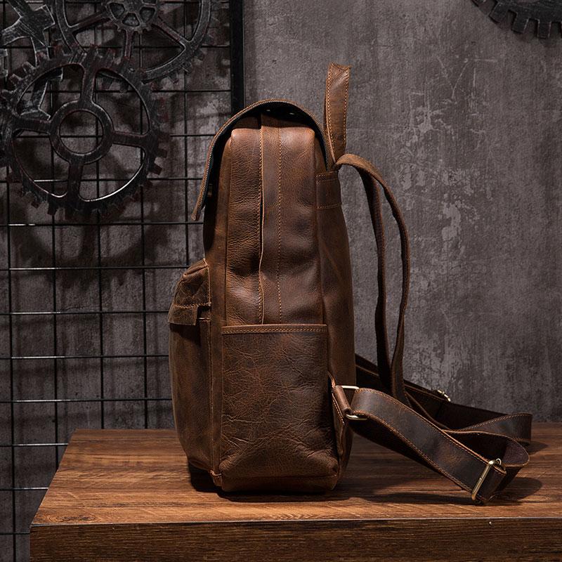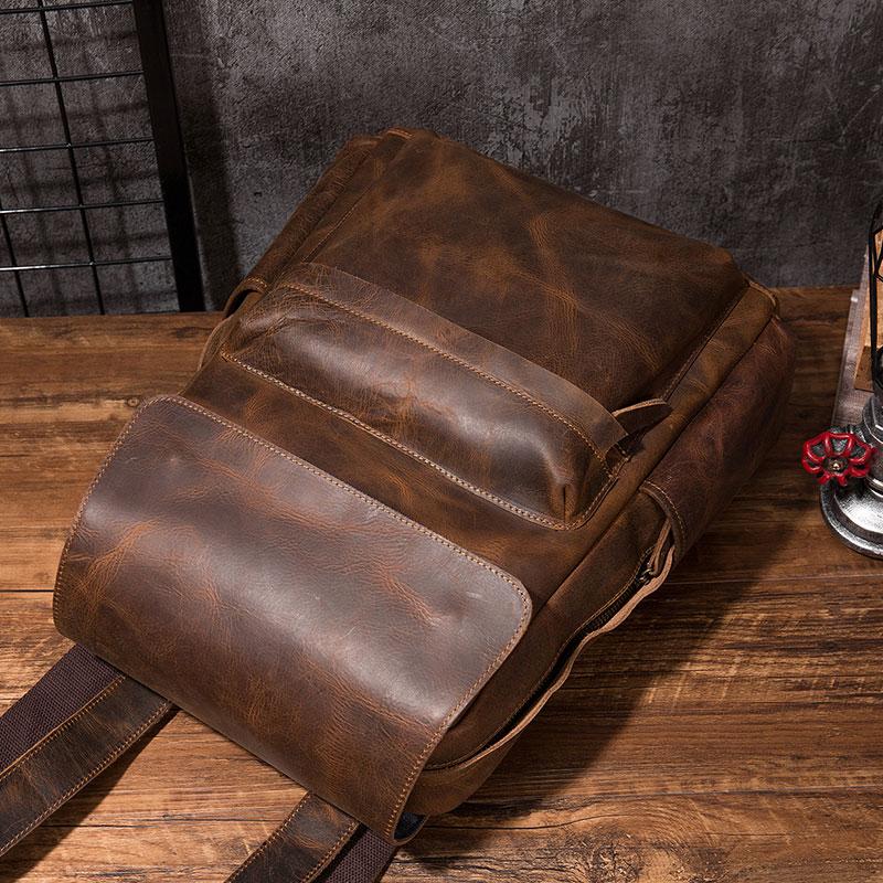 Design: Black Cool Mens Leather Backpack Travel Backpack Leather 15inch Laptop Backpack for Men