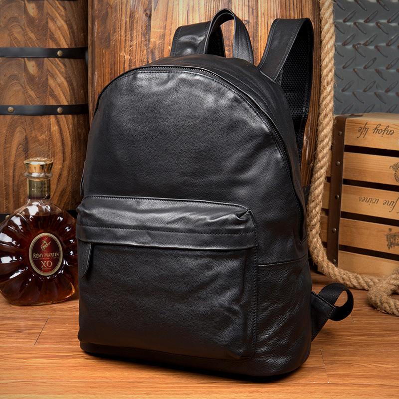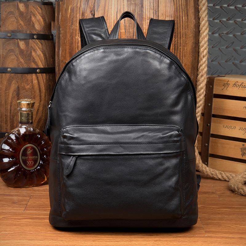 Design: Black Fashion Mens Leather 13-inch Computer Backpacks Cool Travel Backpacks School Backpacks for men