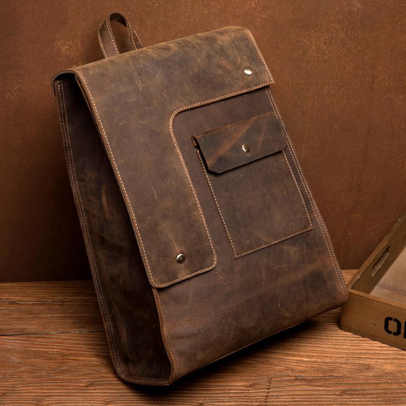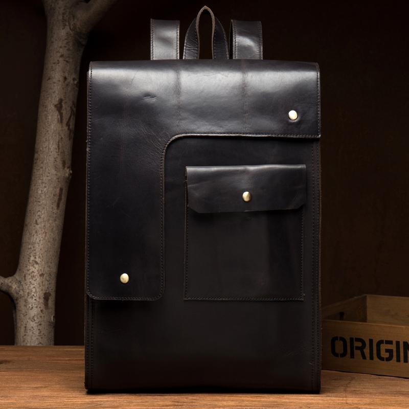 Design: Black Fashion Mens Leather 14-inch Computer Backpack Dark Brown Travel Backpacks School Backpacks for men