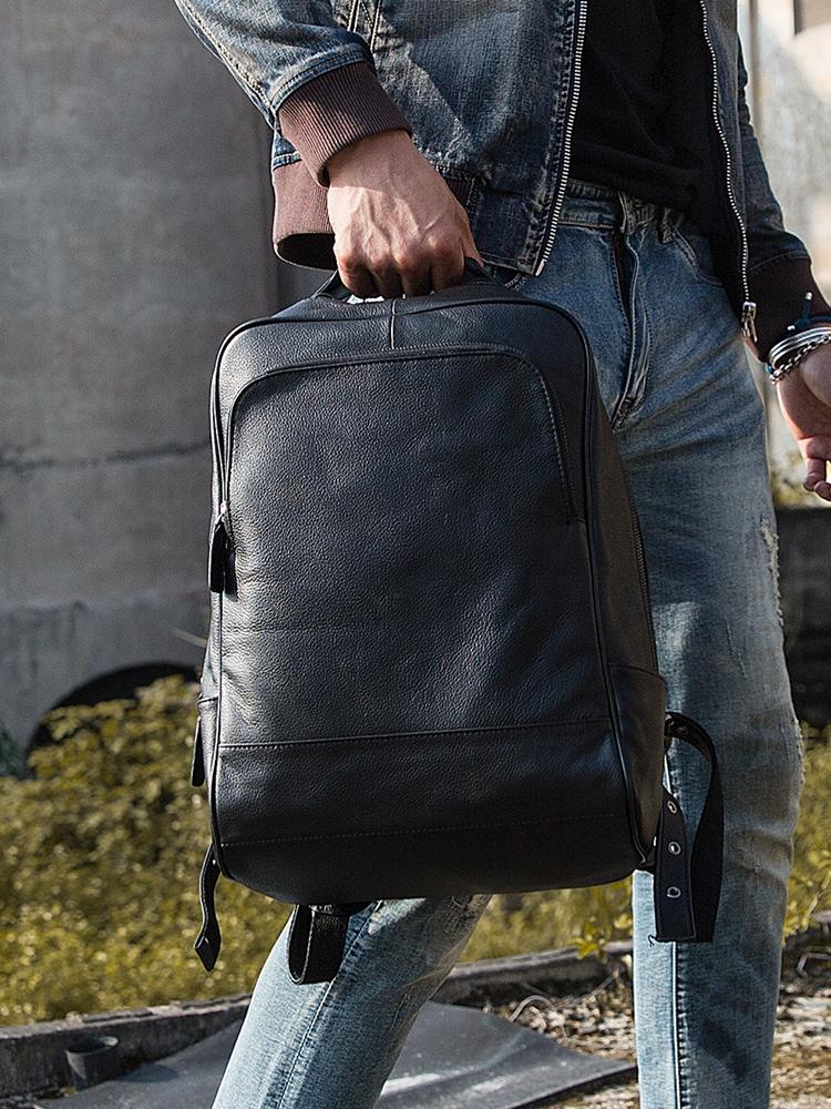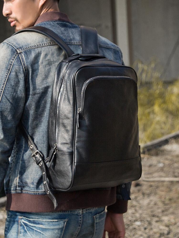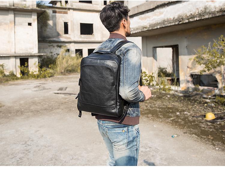 Style: Black Fashion Mens Leather 15-inch Business Computer Backpacks Travel Backpacks Black College Backpack for men