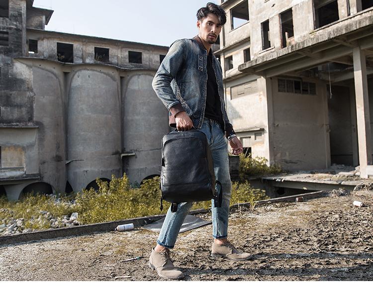 Design: Black Fashion Mens Leather 15-inch Business Computer Backpacks Travel Backpacks Black College Backpack for men