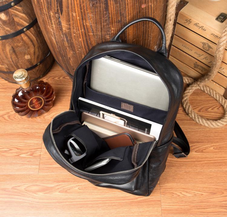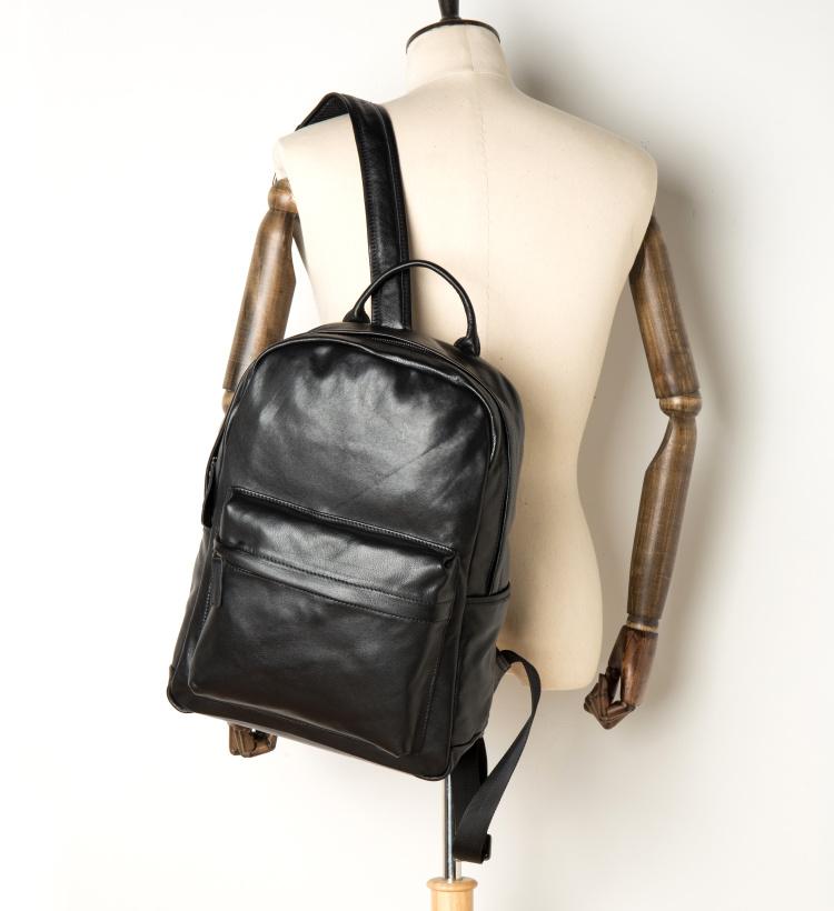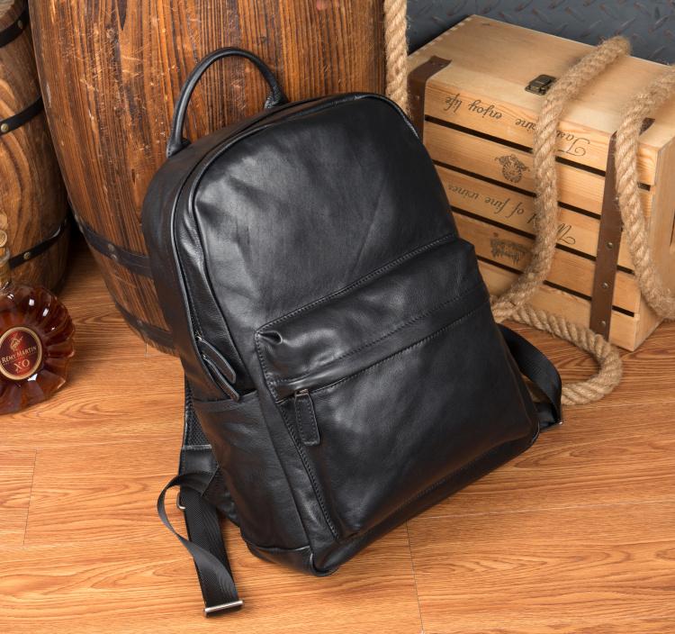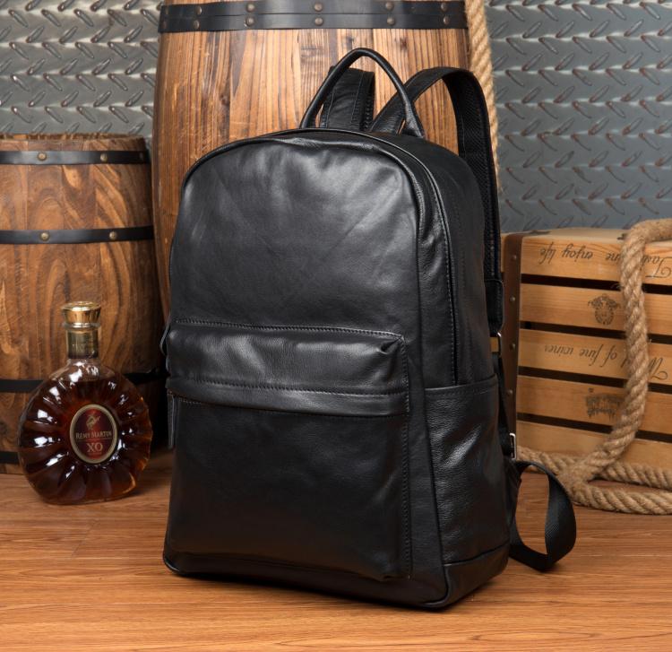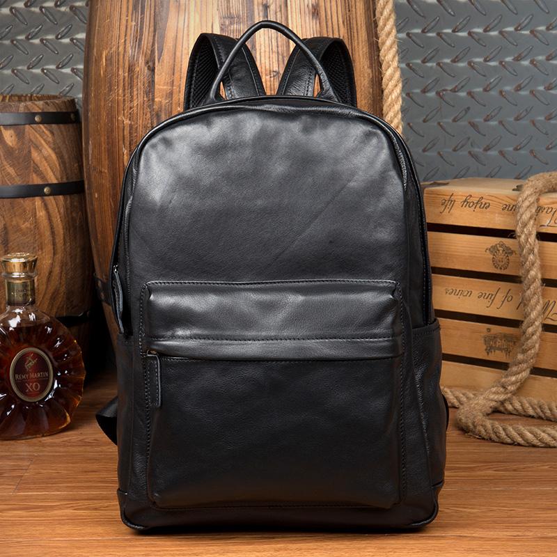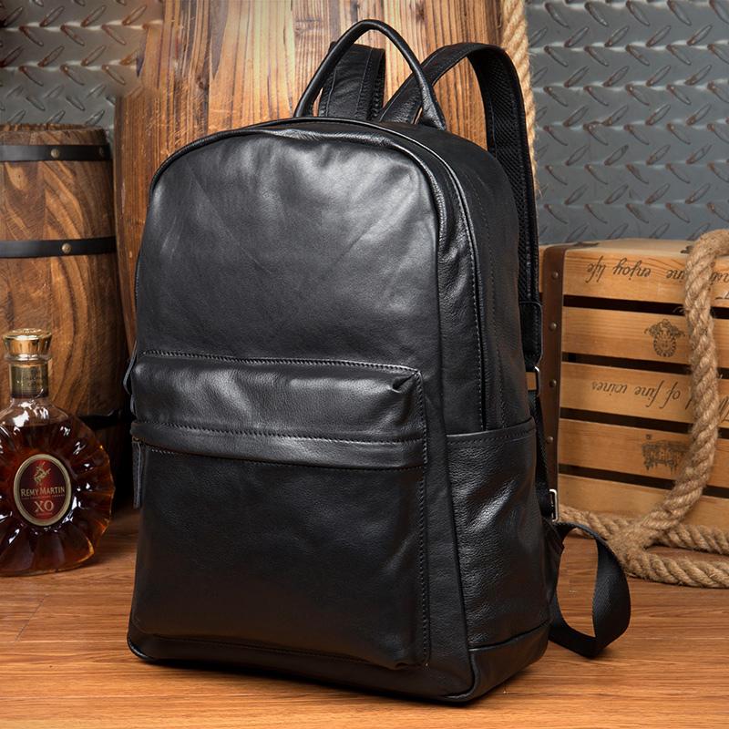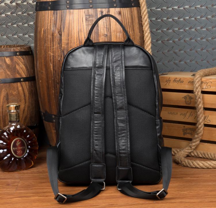 Design: Black Fashion Mens Leather 15-inch Computer Backpacks Cool Travel Backpack School Backpack for men