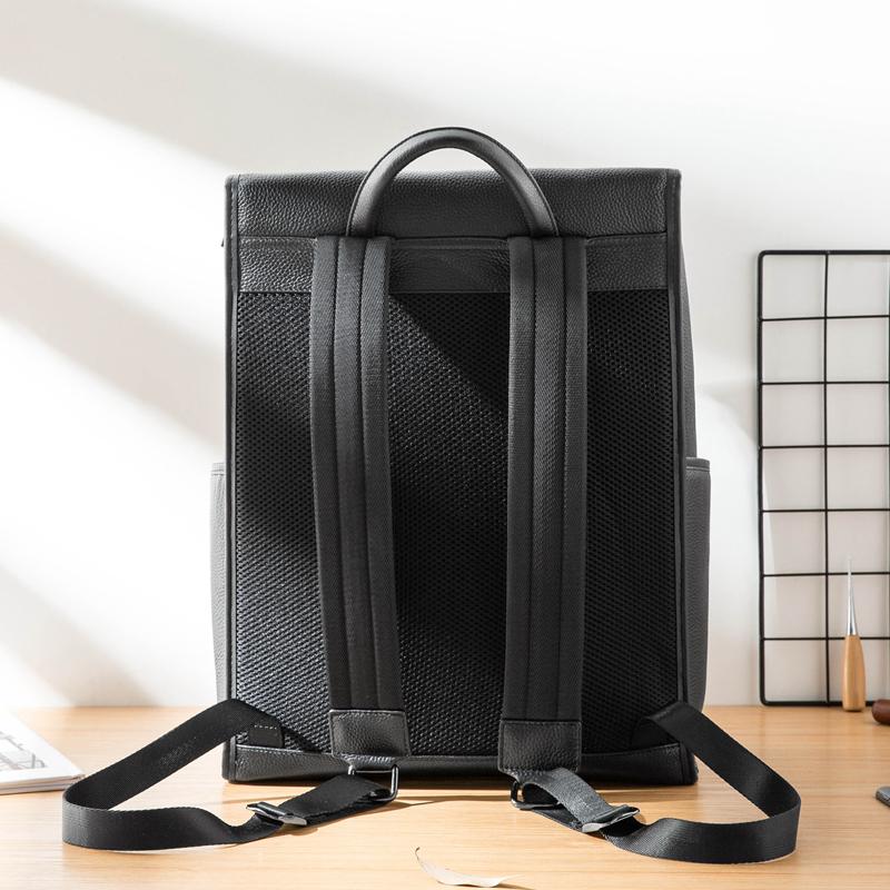 Design: Black Fashion Mens Leather 15-inch Multifunction Backpacks Business Travel Backpacks Laptop Backpack for men
