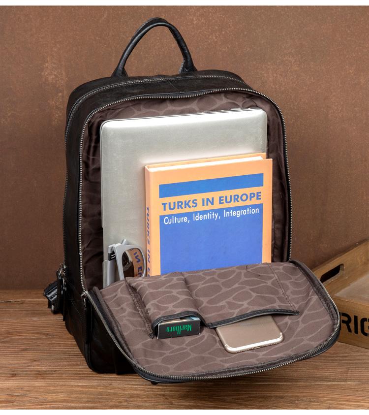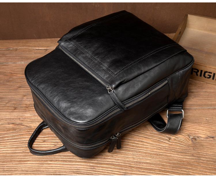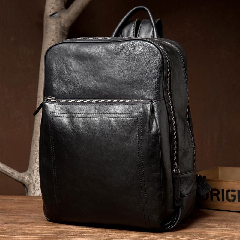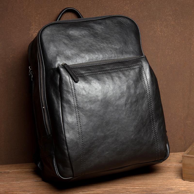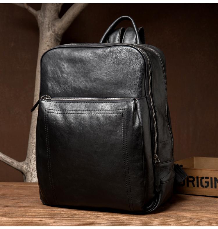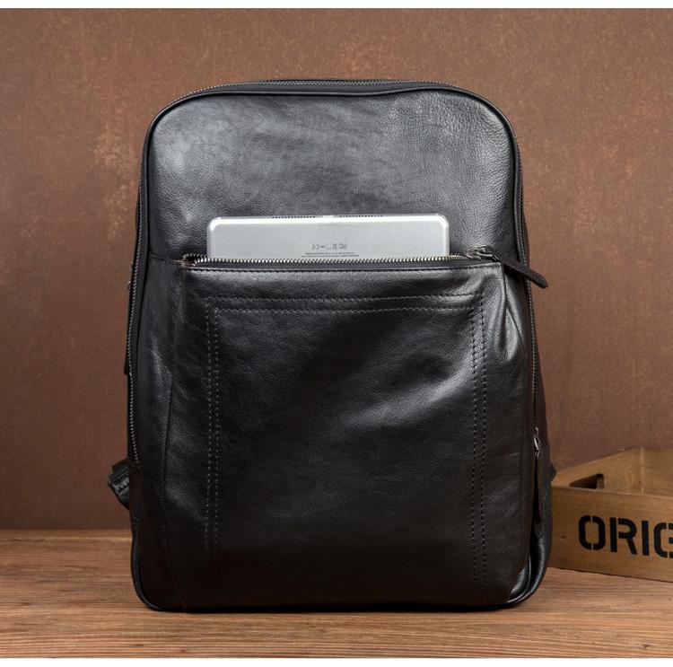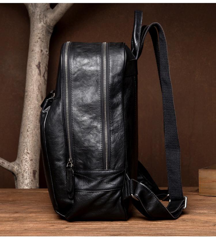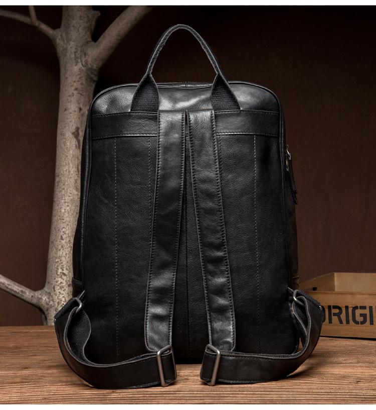 Design: Black Fashion Mens Leather 15-inches Computer Backpacks Cool Travel Backpacks School Backpacks for men