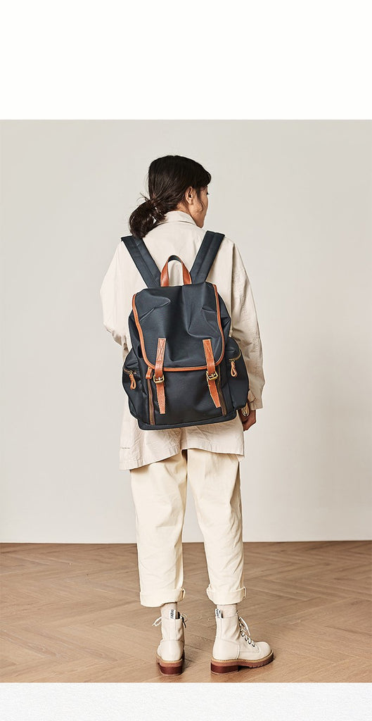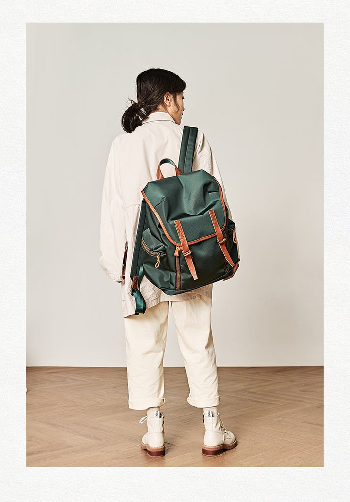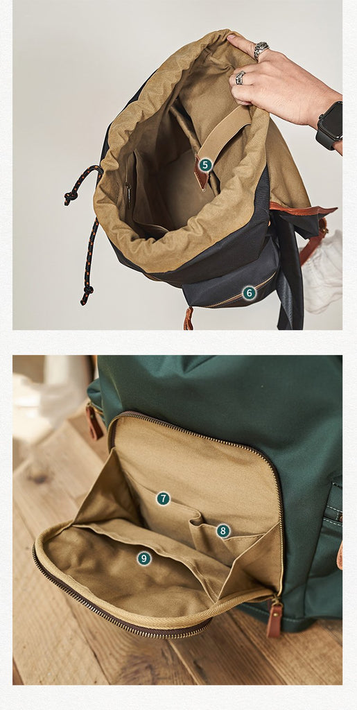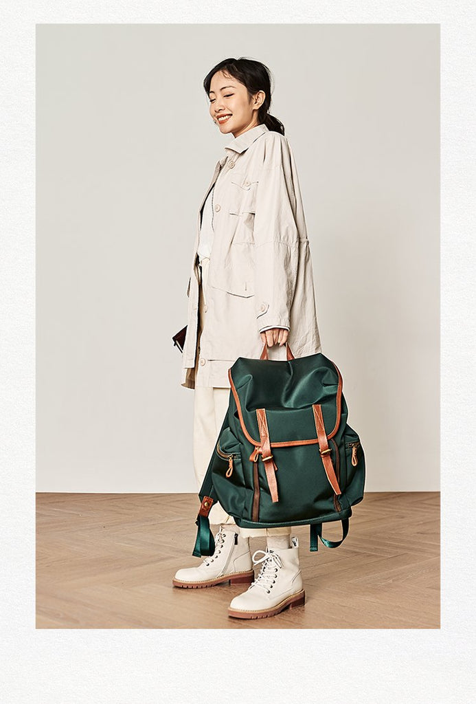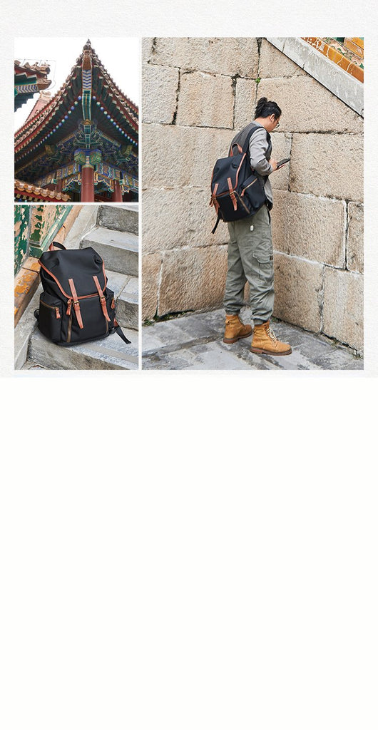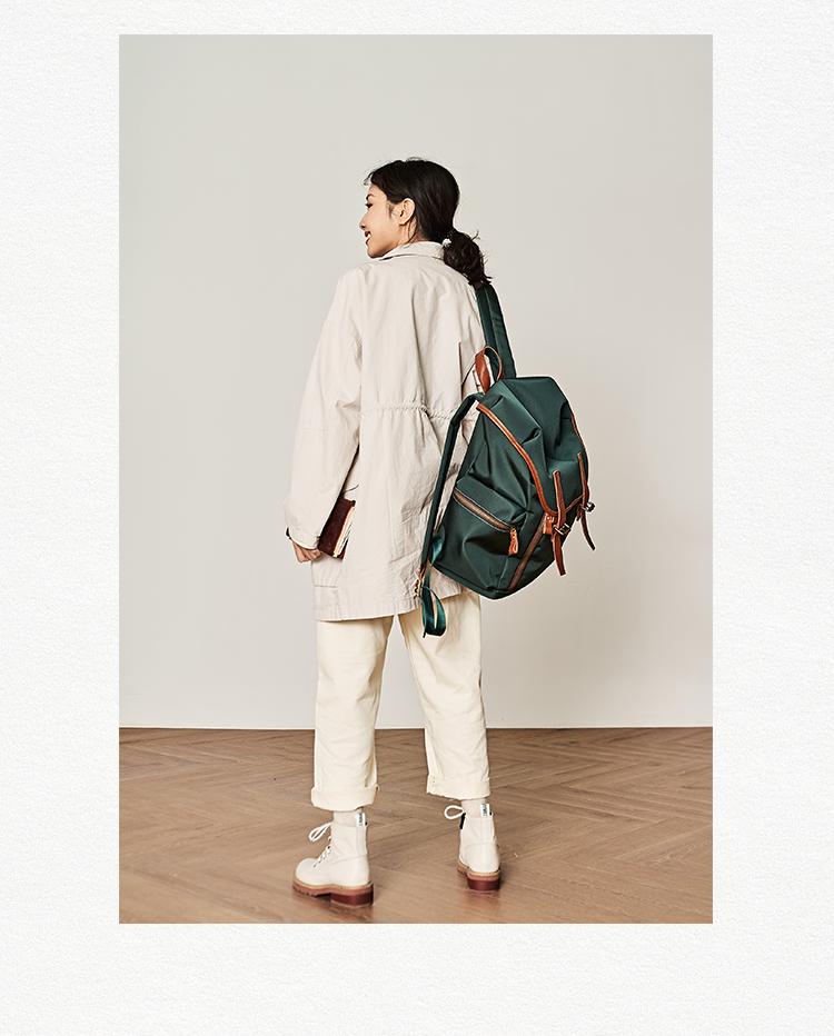Design: Fashion Black Nylon Leather Mens Backpack Nylon Travel Backpack Green Nylon School Backpack for Men