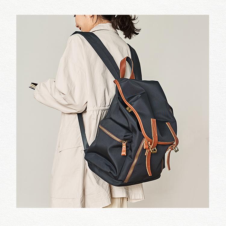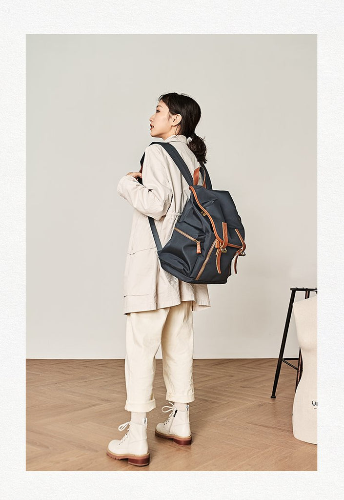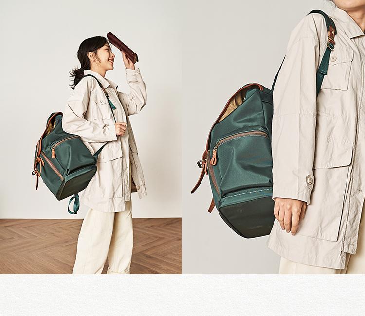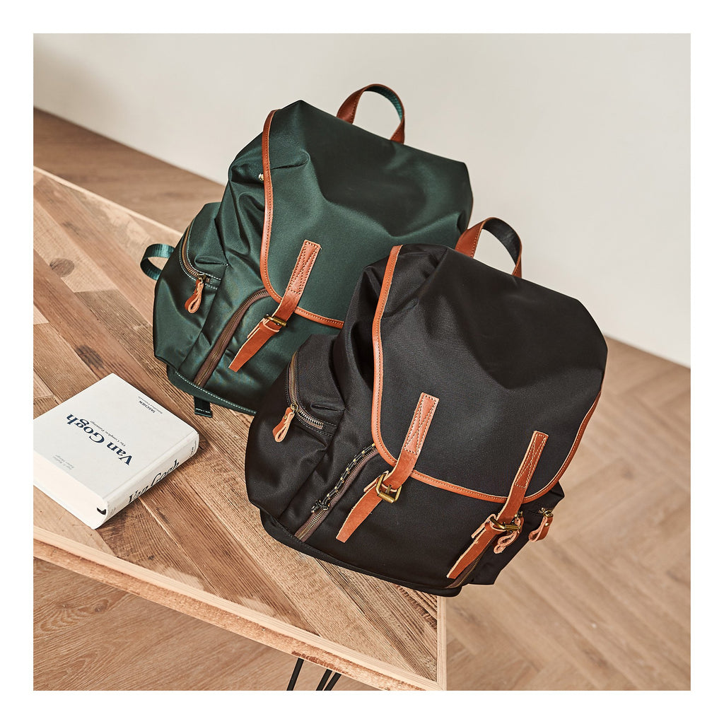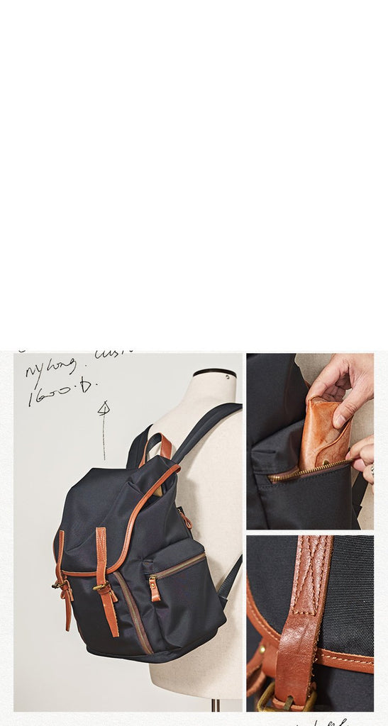Design: Fashion Black Nylon Leather Mens Backpack Nylon Travel Backpack Green Nylon School Backpack for Men