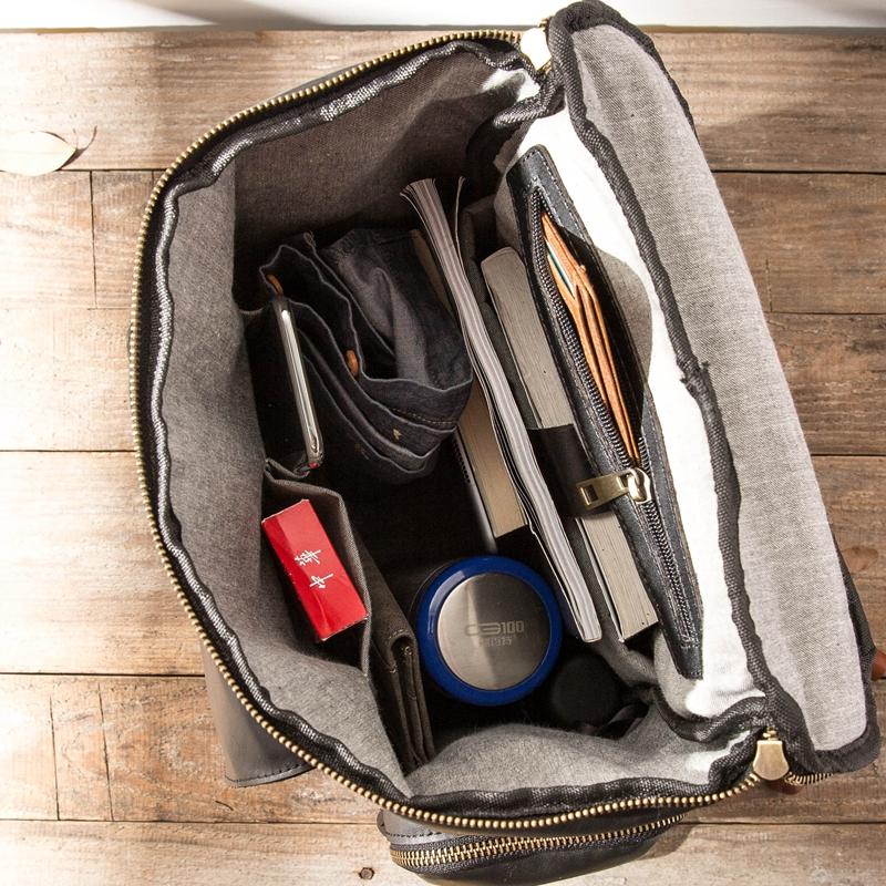 Slots: 1 zipper slot, 1 pad slot, 1 book slot, 1 wallet slots, 1 phone slot