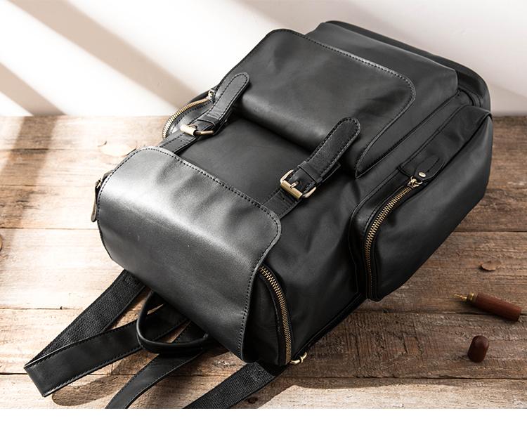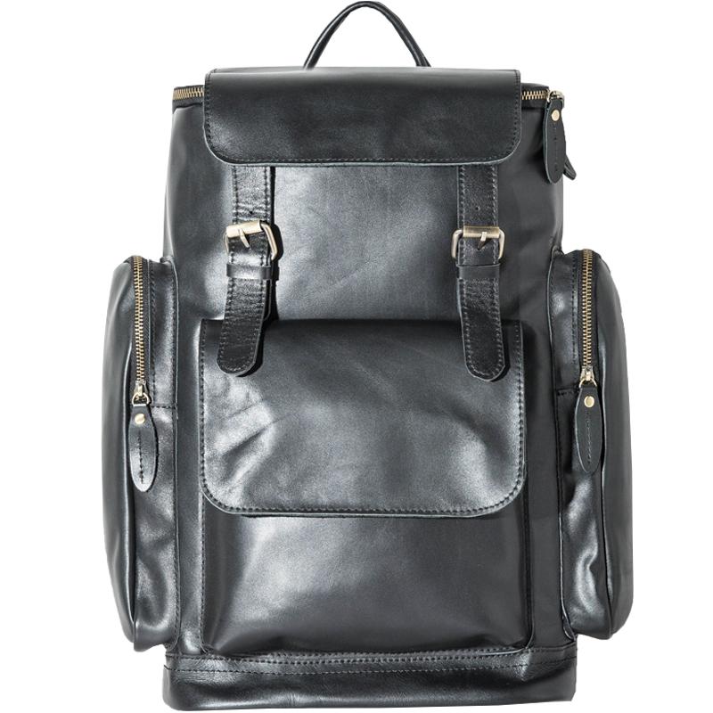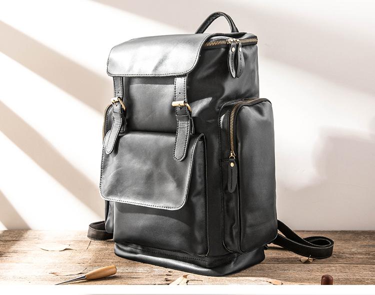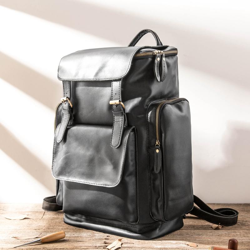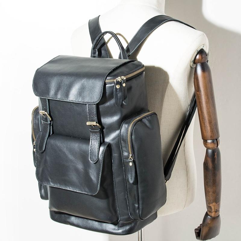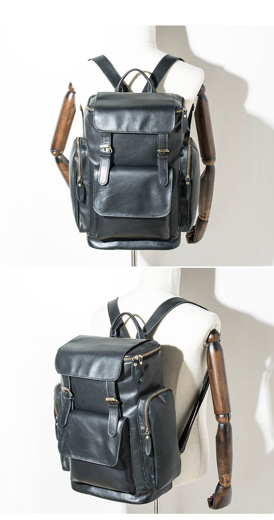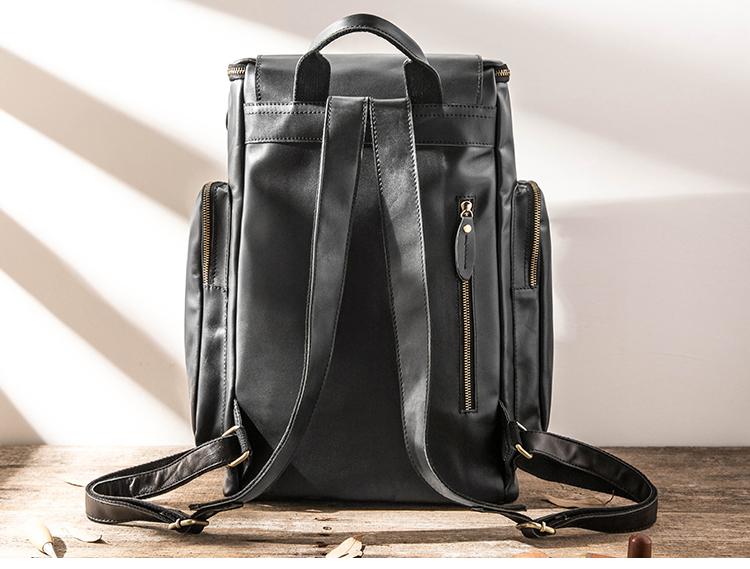 Design: Black Simple Mens Leather 15 inches College Bag Travel Backpacks Computer Backpack for men