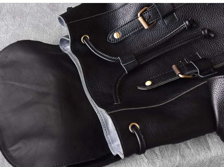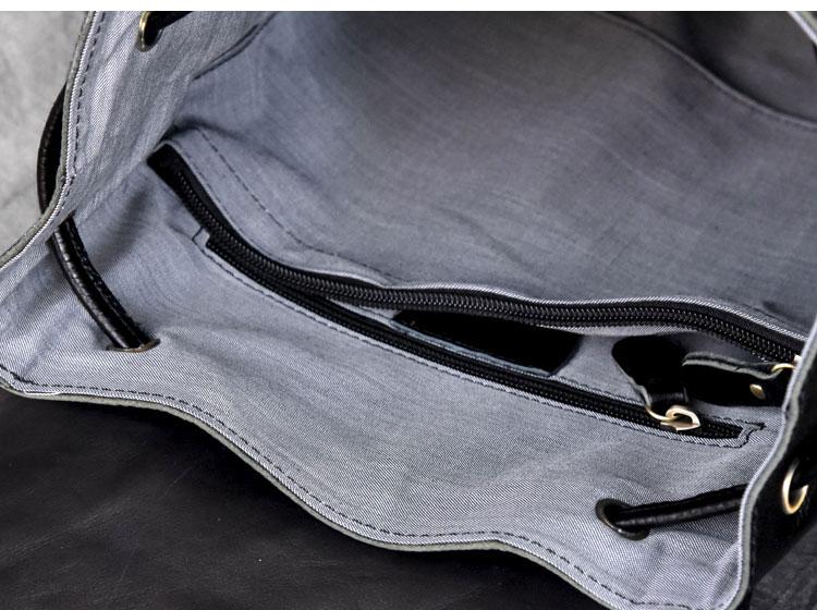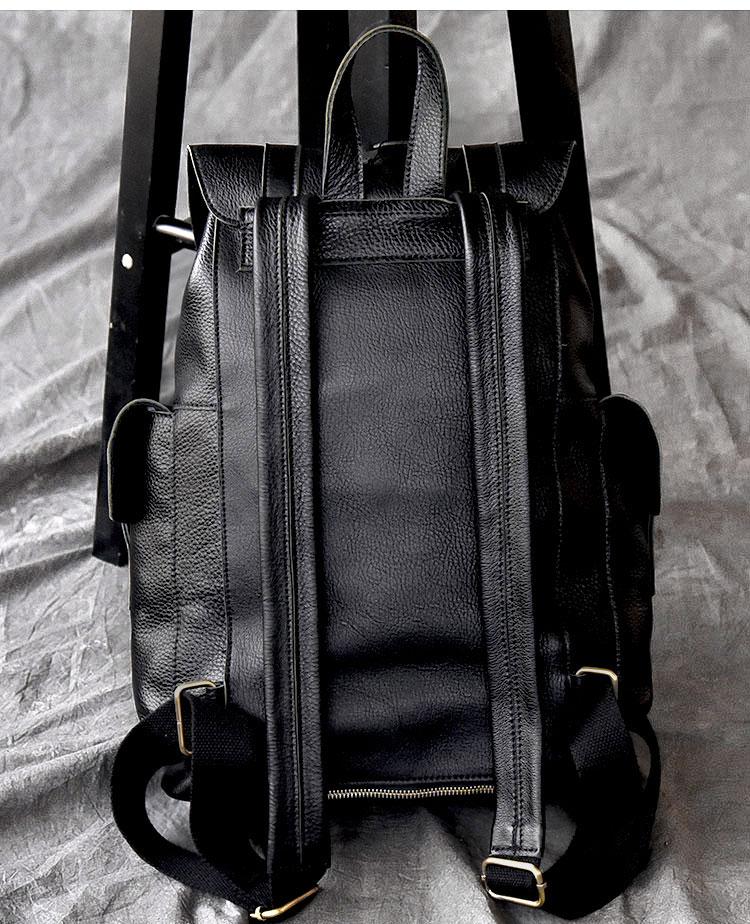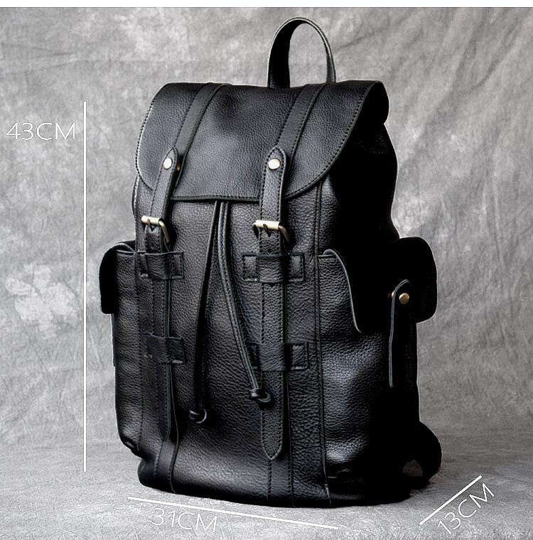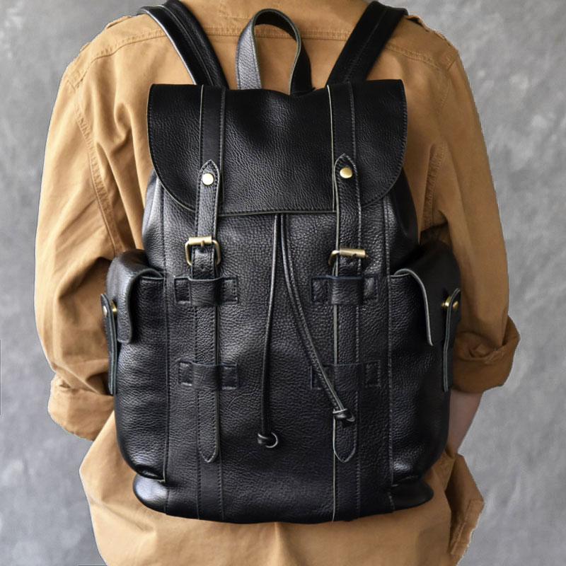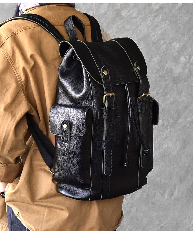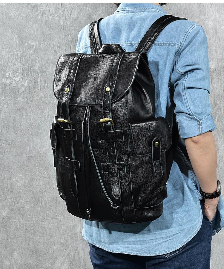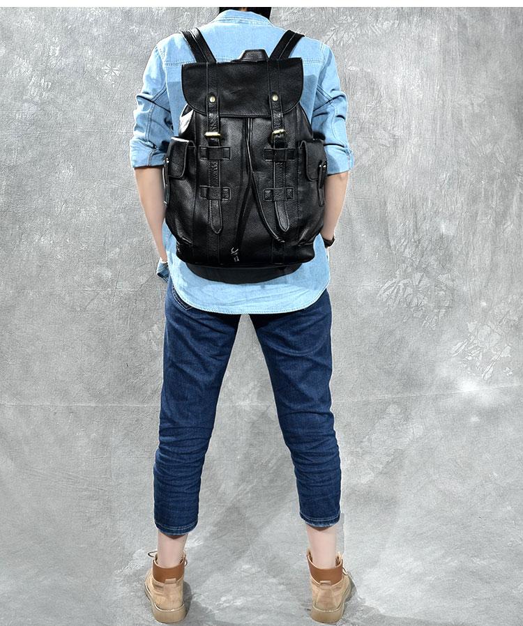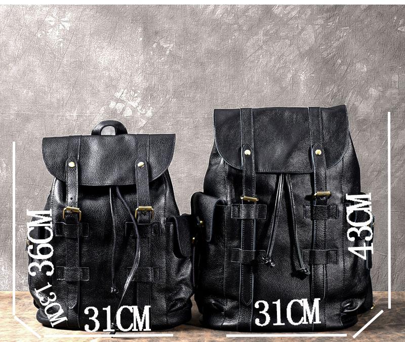 Design: Black Waxed Leather Mens 15" Large Backpack Hiking Backpack Travel Backpack College Backpack for Men