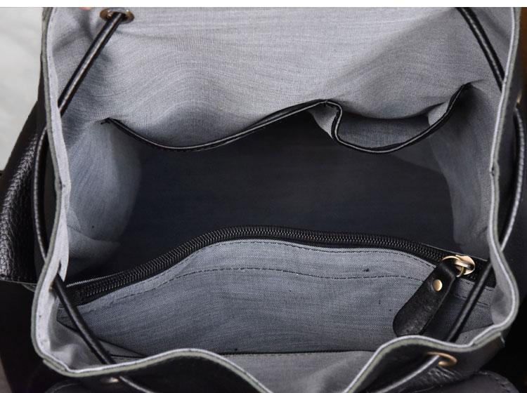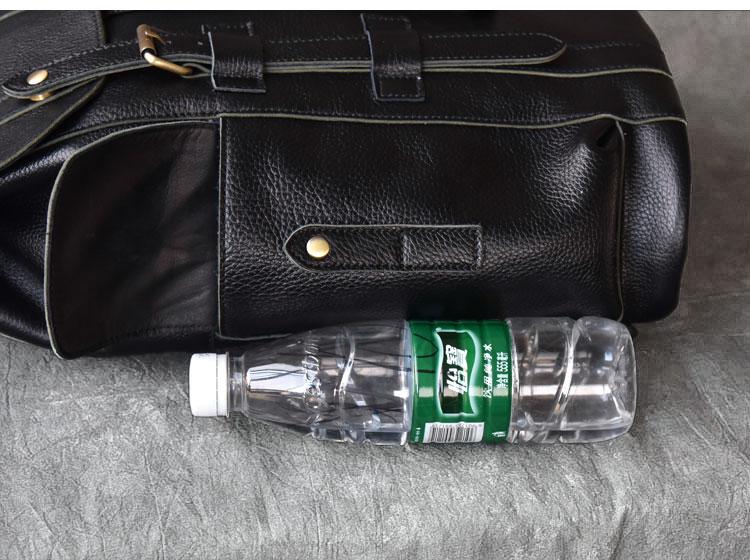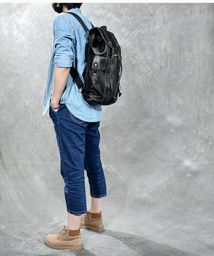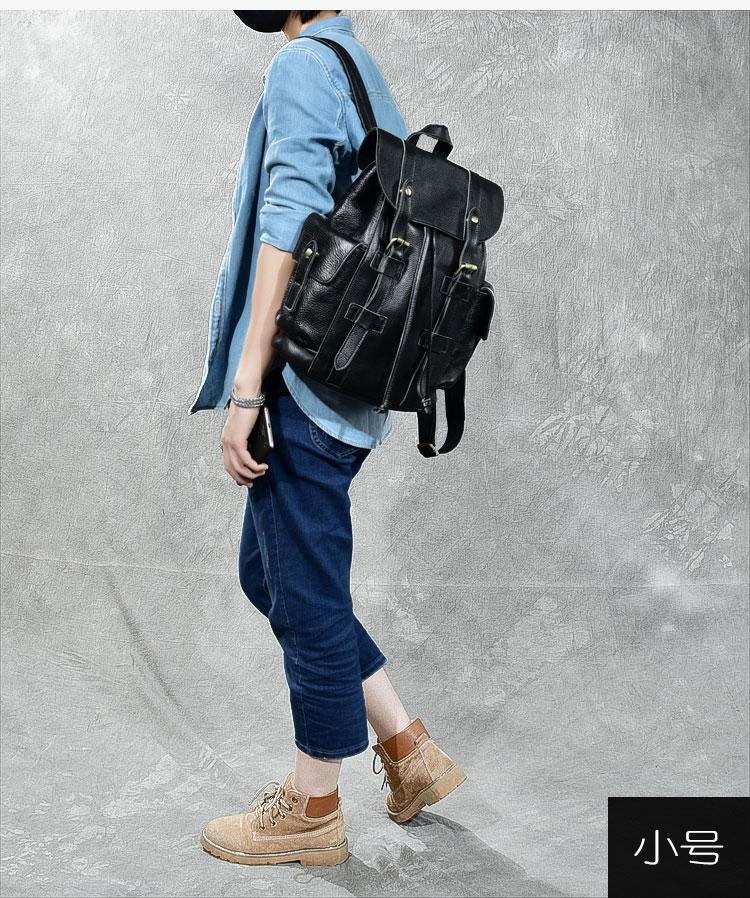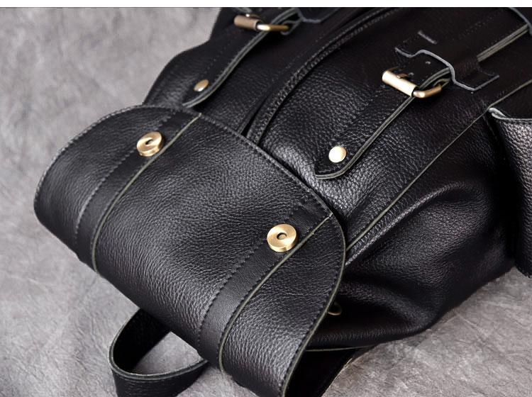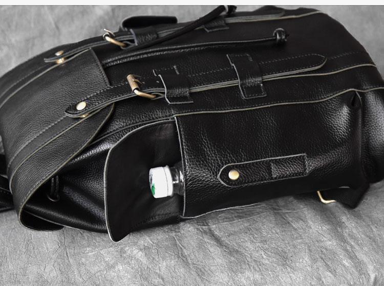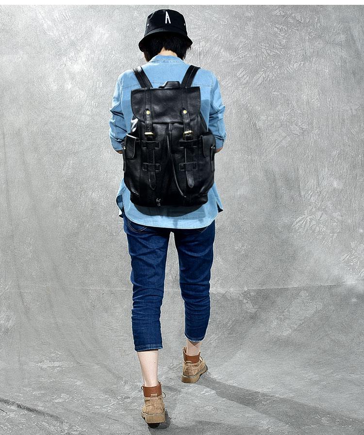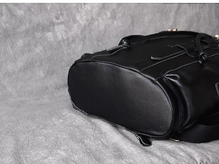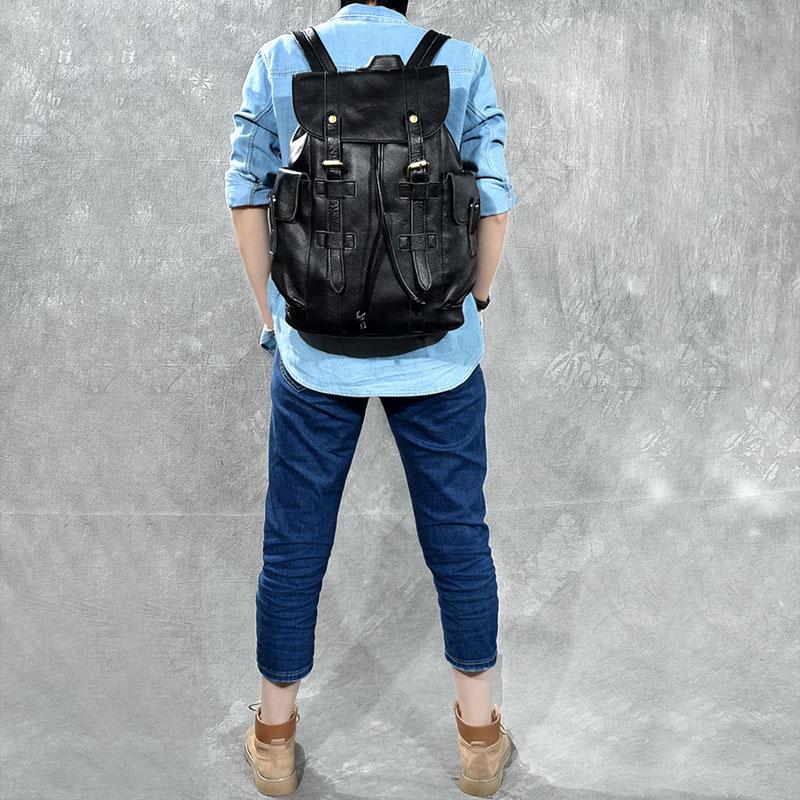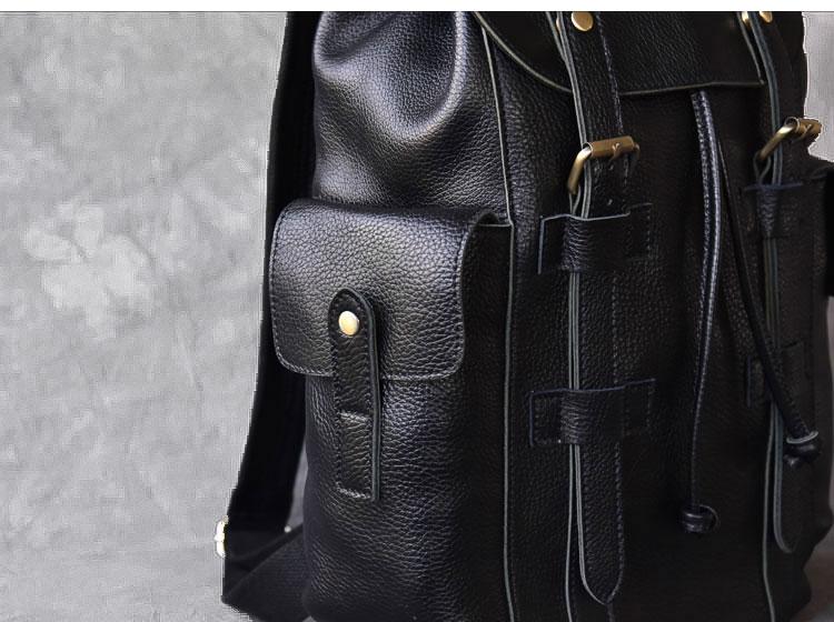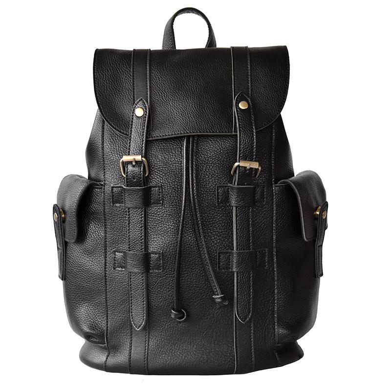 Design: Black Waxed Leather Mens 15" Large Backpack Hiking Backpack Travel Backpack College Backpack for Men