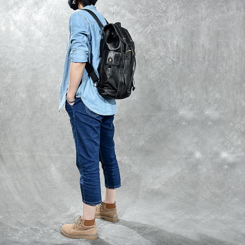 Style: Black Waxed Leather Mens 15" Large Backpack Hiking Backpack Travel Backpack College Backpack for Men