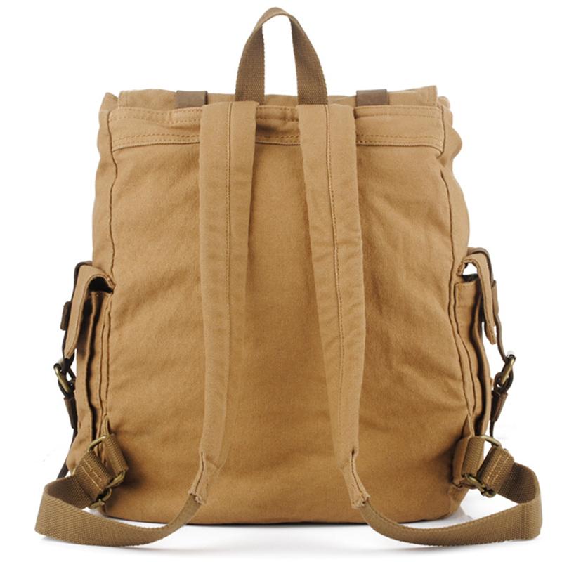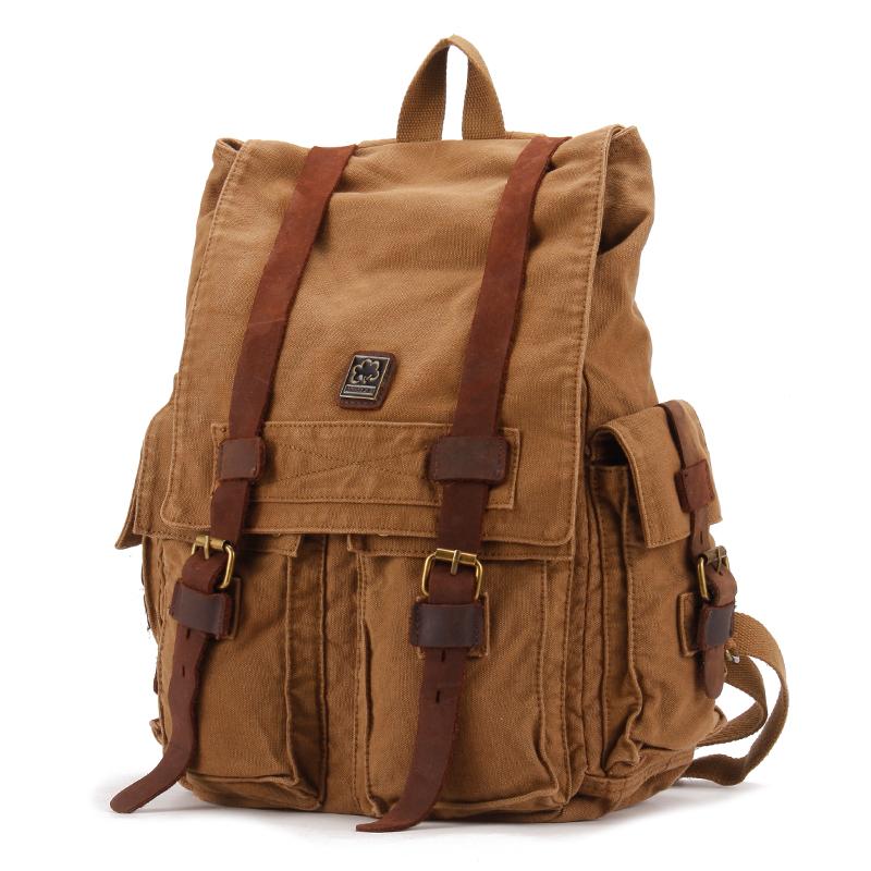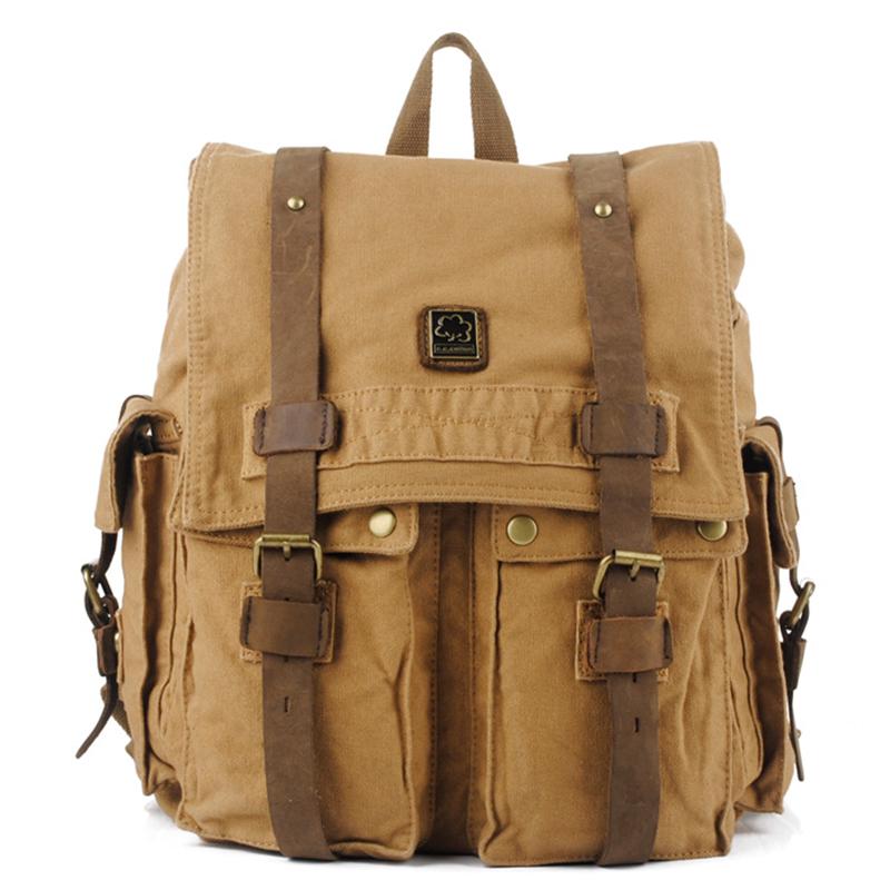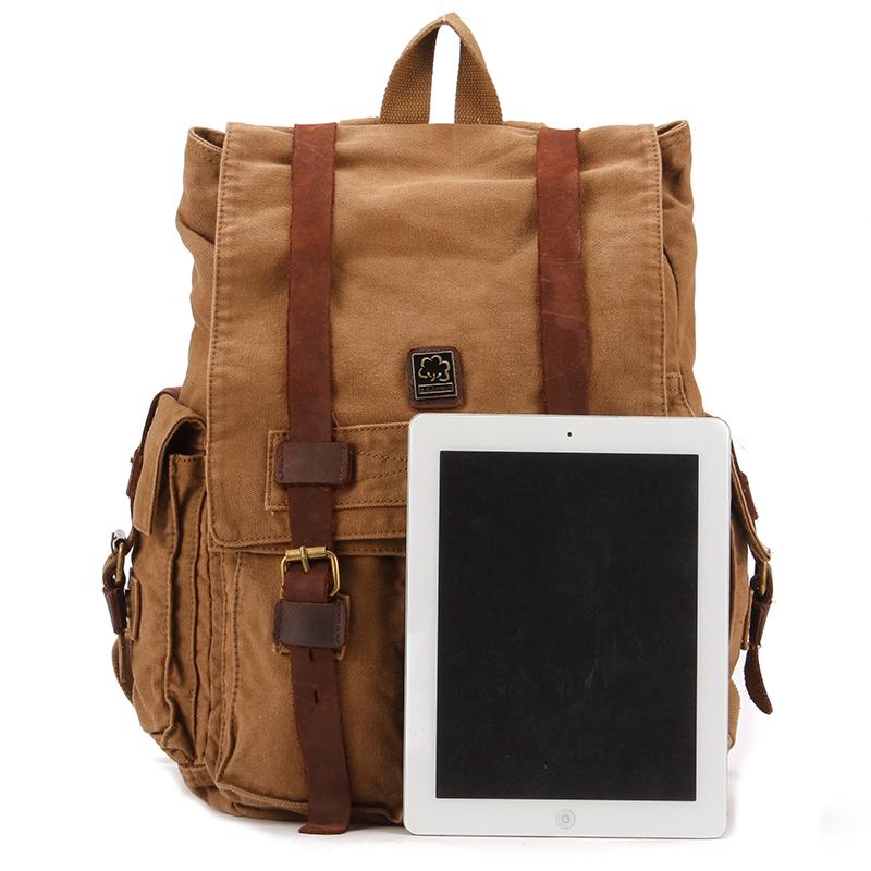 Design: Brown CANVAS Mens Fashion Khaki Travel Bag College Backpack Hiking Bag For Men