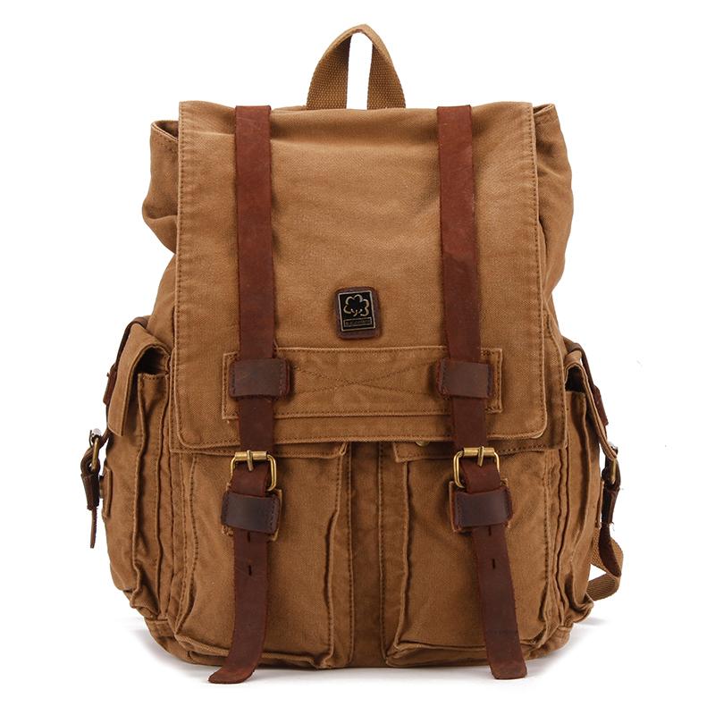 Style: Brown CANVAS Mens Fashion Khaki Travel Bag College Backpack Hiking Bag For Men