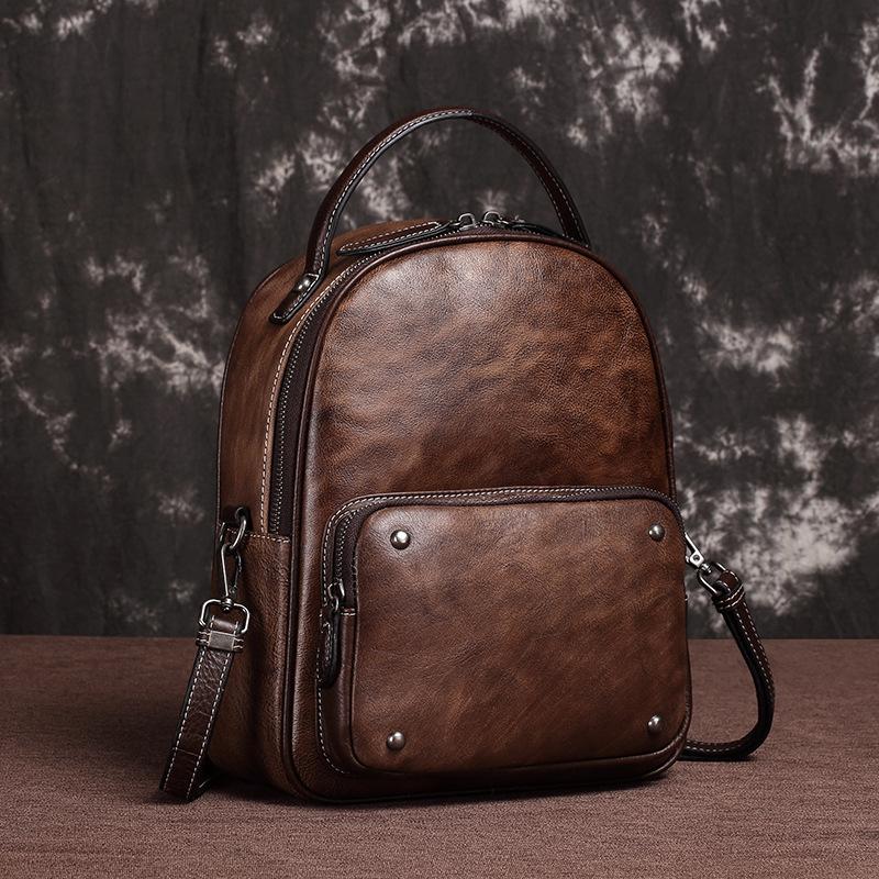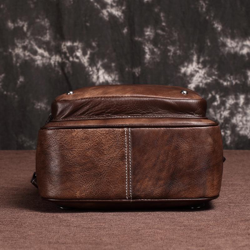 Style: Brown Cool LEATHER MENS 12 inches Hand Bag Red Computer Backpack College Backpack For Men