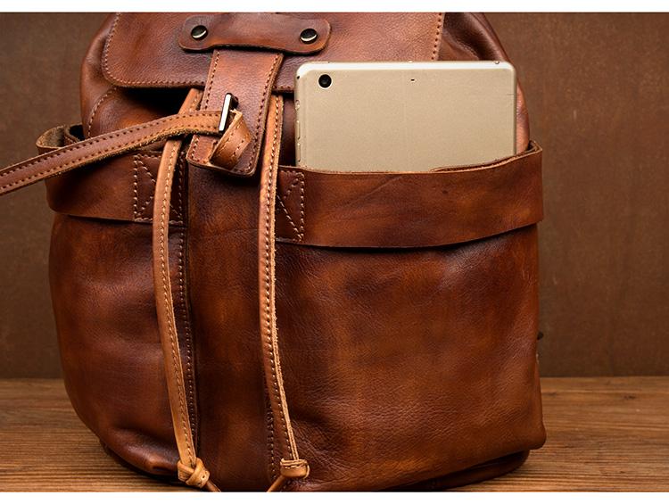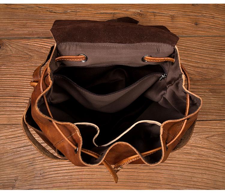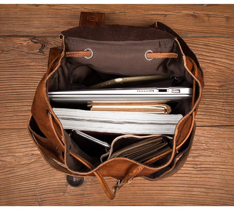Design: Brown Fashion Mens Leather 15-inch Hiking Backpacks Travel Backpacks School Backpacks for men