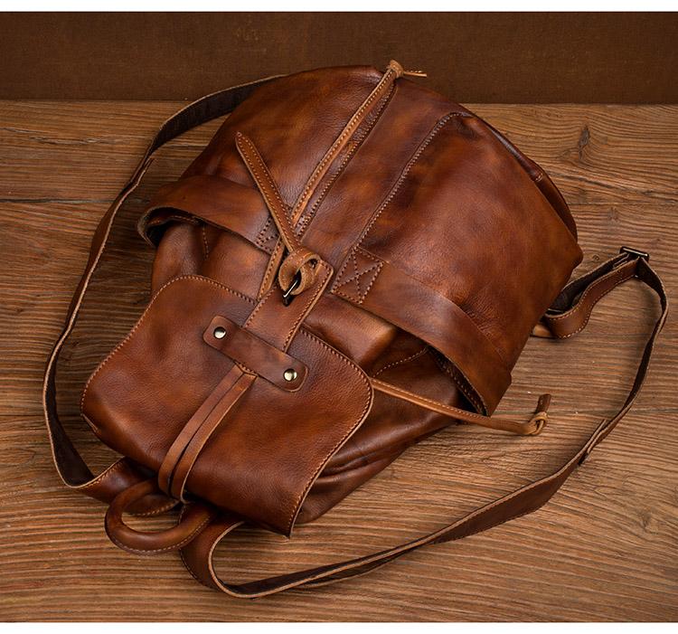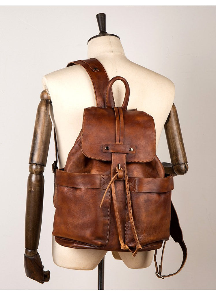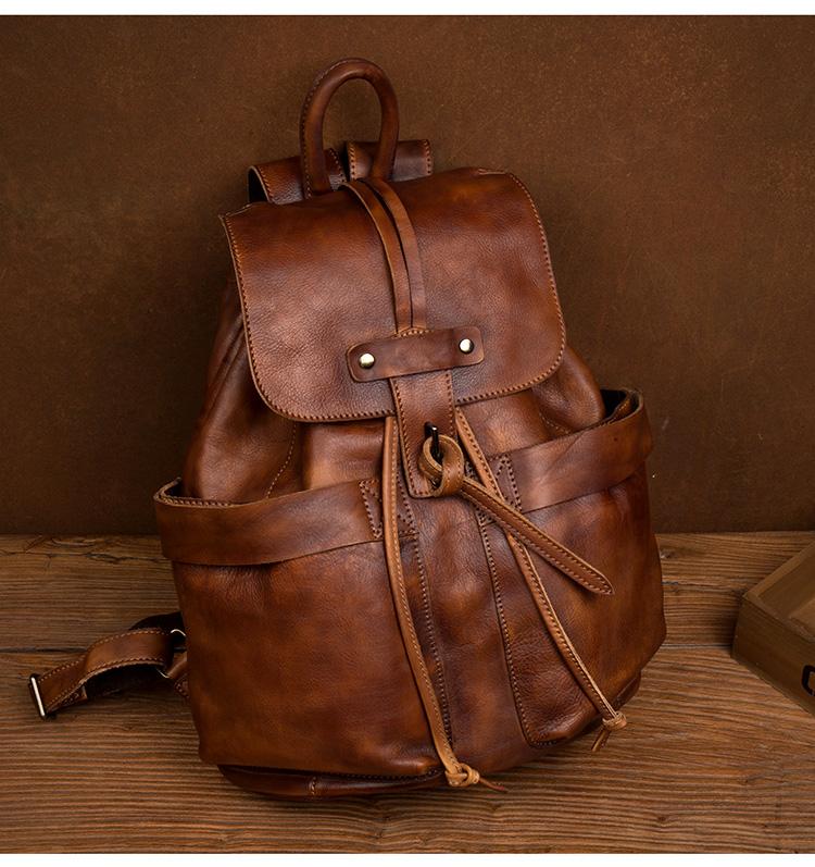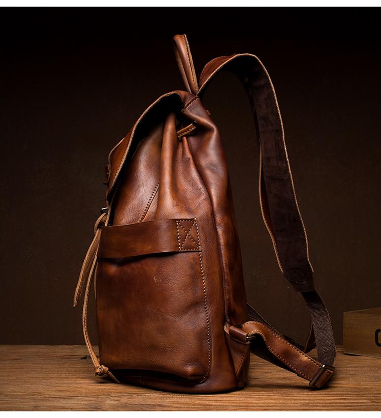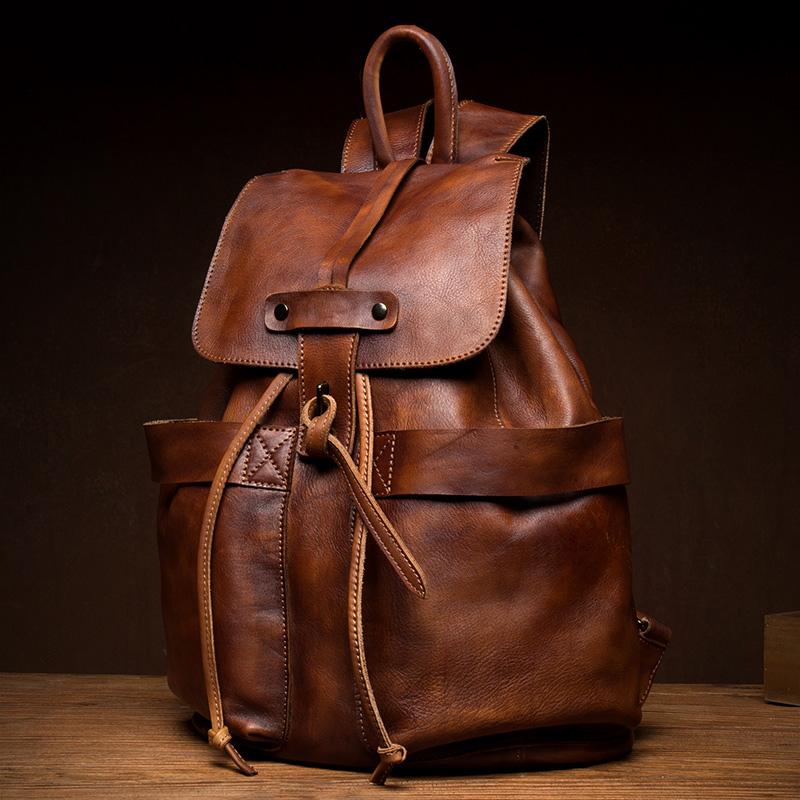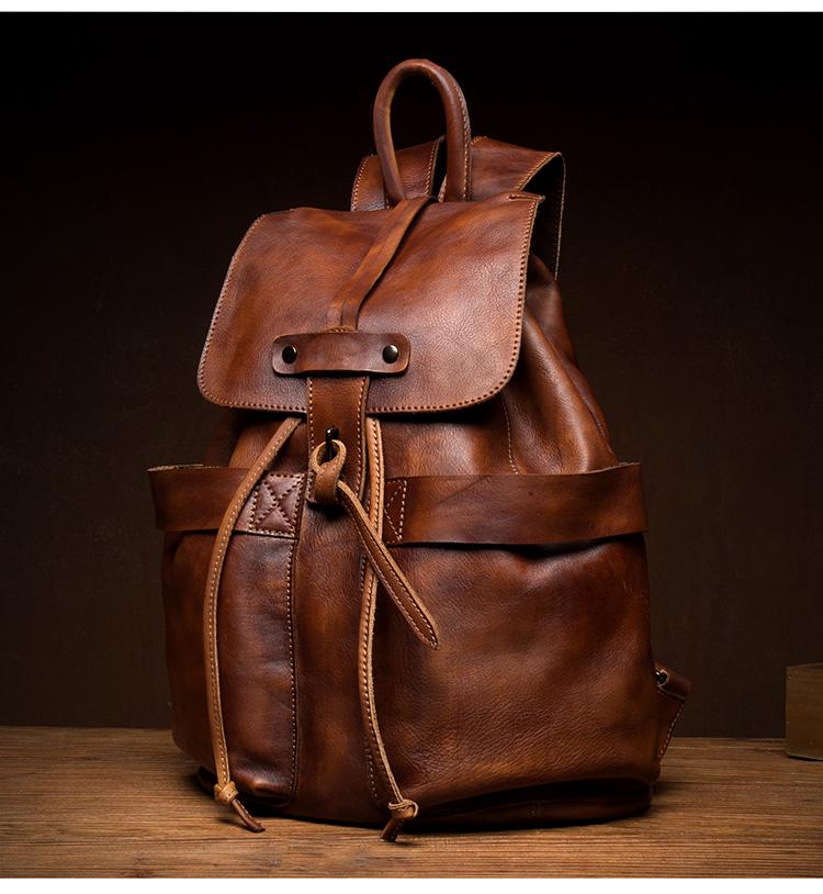 Style: Brown Fashion Mens Leather 15-inch Hiking Backpacks Travel Backpacks School Backpacks for men