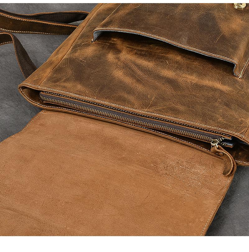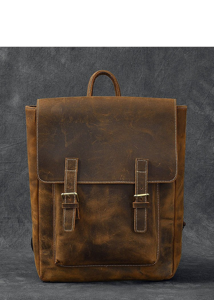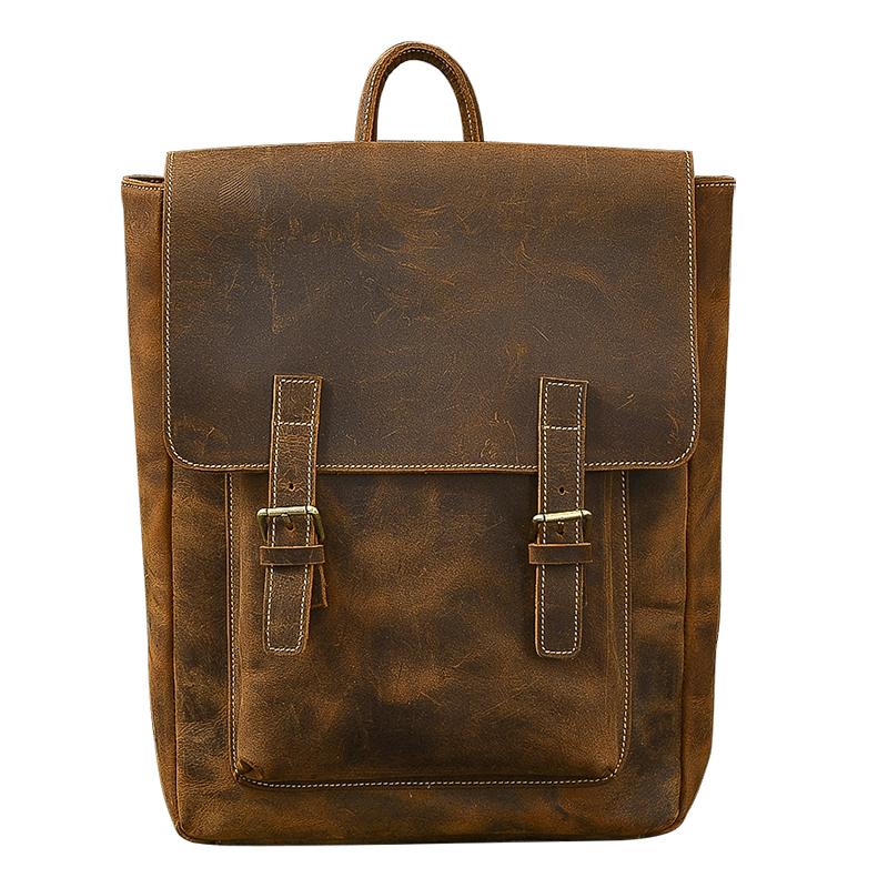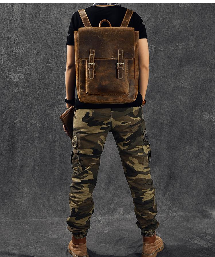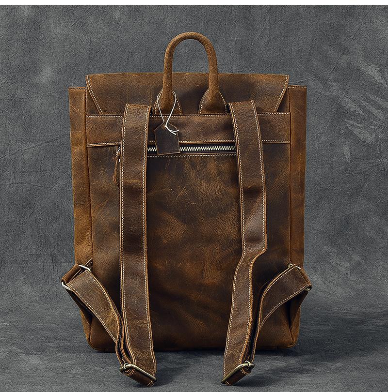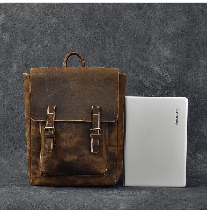 Design: Brown Leather Mens 14" Laptop Hiking Backpack Travel Backpack College Bag for Men