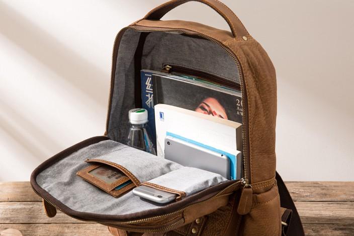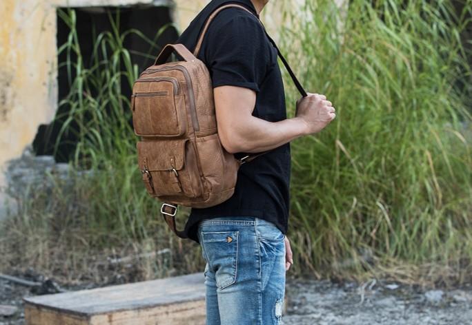 Style: Brown Mens Leather Backpacks Travel Backpacks Laptop Backpack for men