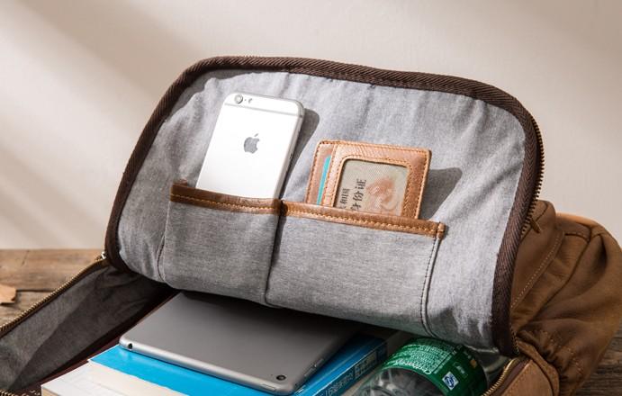 Slots: 1 zipper slot, 1 pad slot, 1 book slot, 1 wallet slots, 1 phone slot