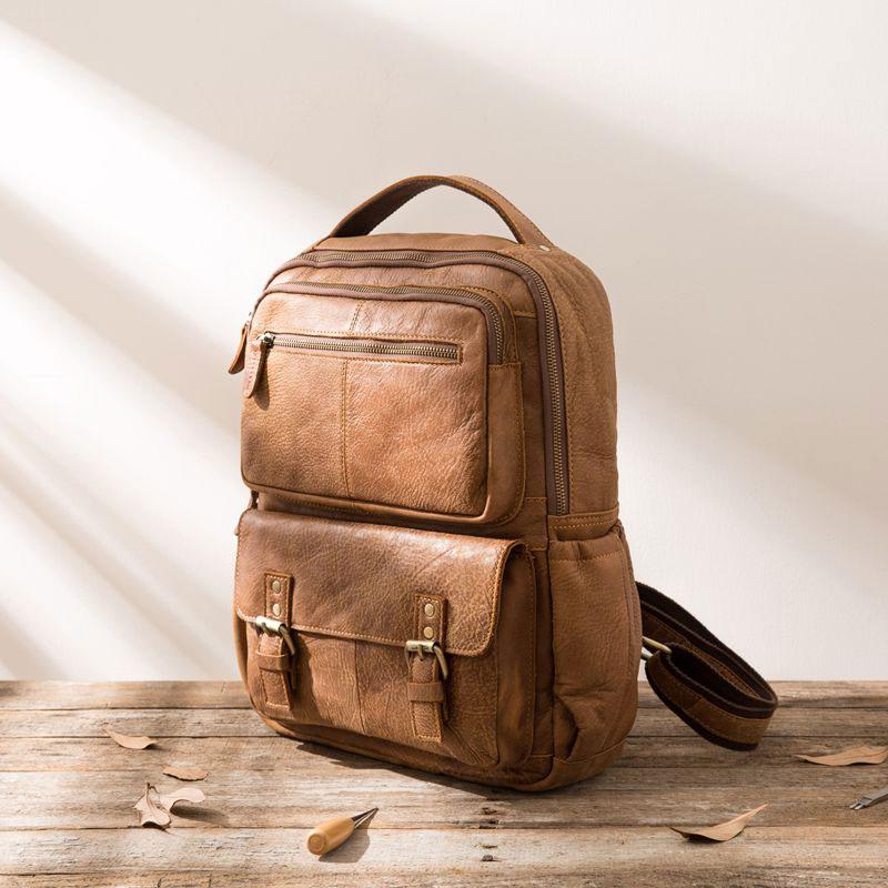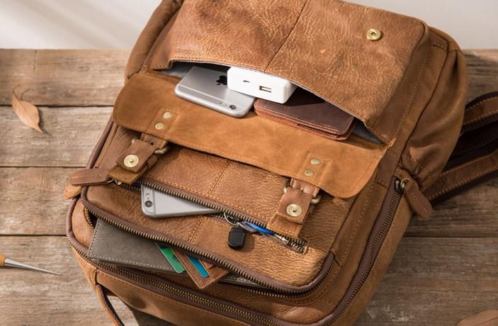 Design: Brown Mens Leather Backpacks Travel Backpacks Laptop Backpack for men