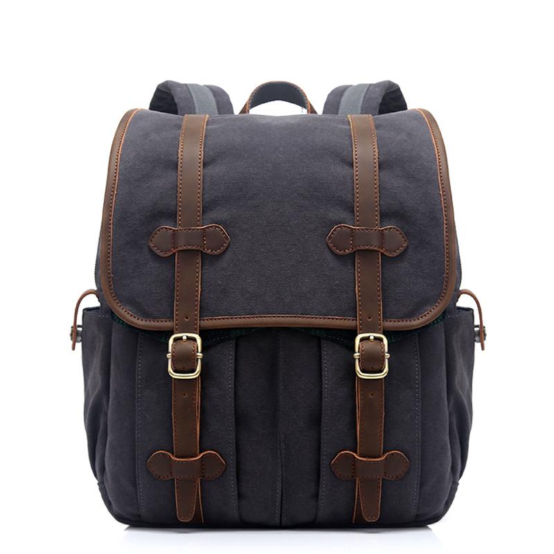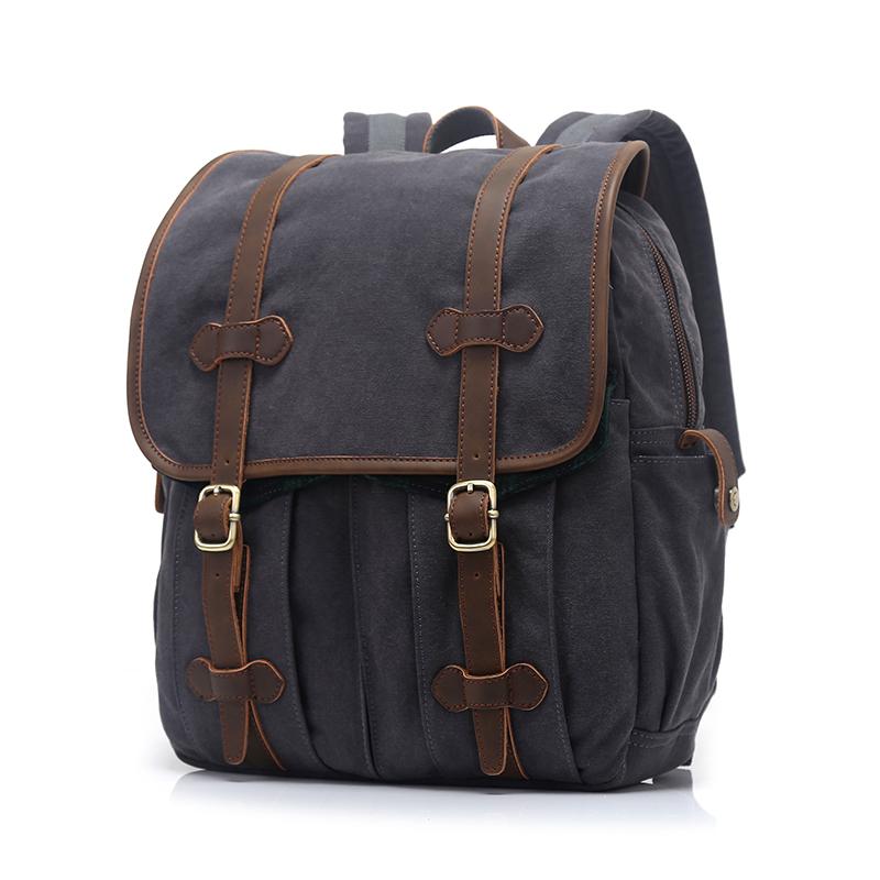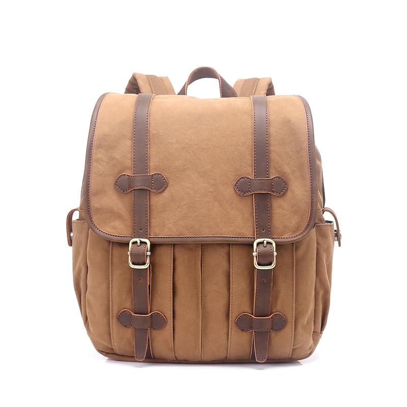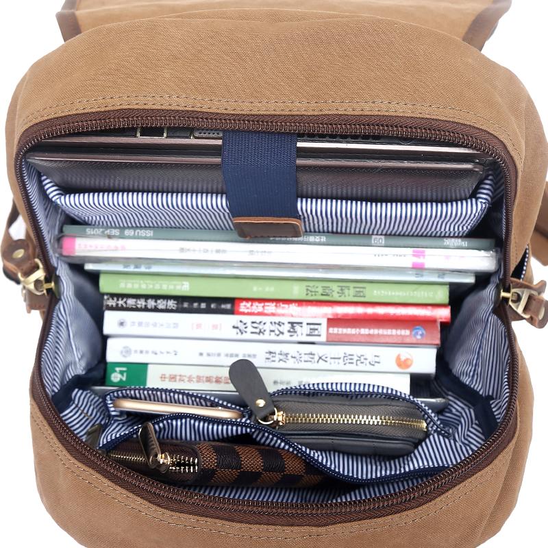 Design: Canvas Leather Mens 13" Army Green Small Backpack Computer Bag Luggage Bag for Men