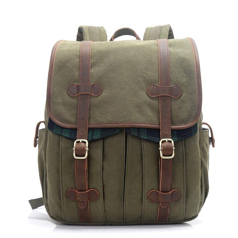 Style: Canvas Leather Mens 13" Army Green Small Backpack Computer Bag Luggage Bag for Men
