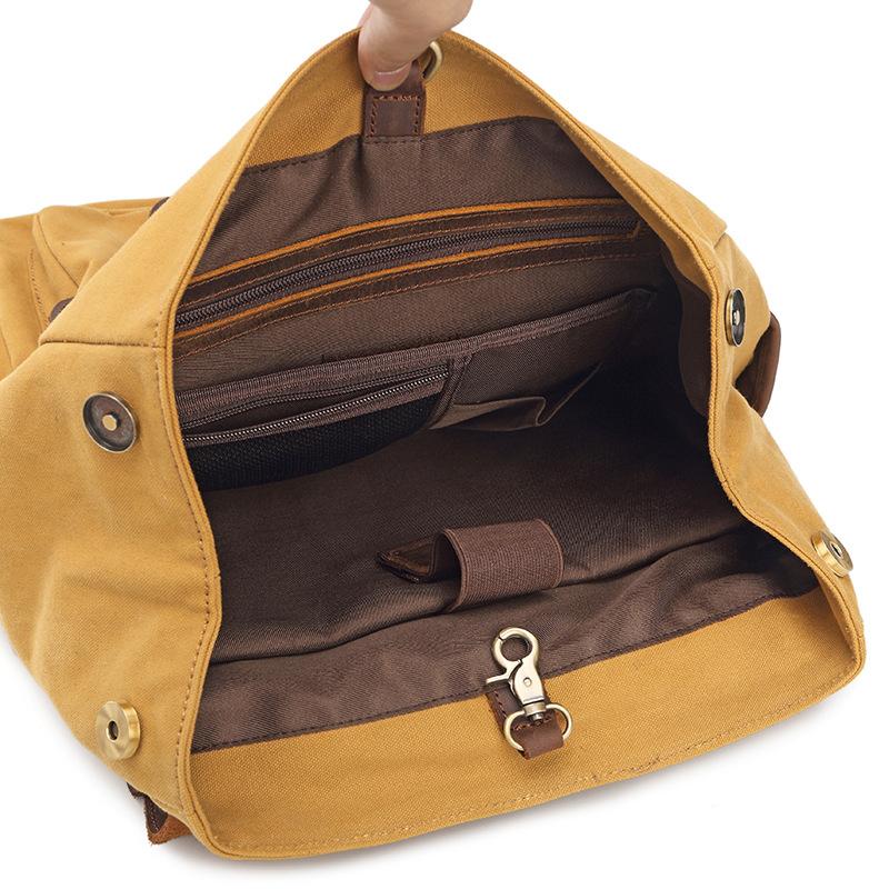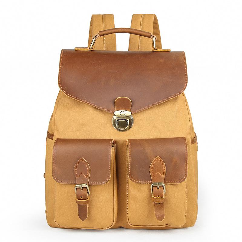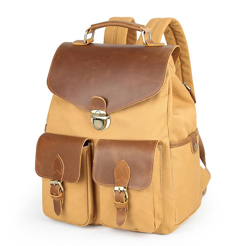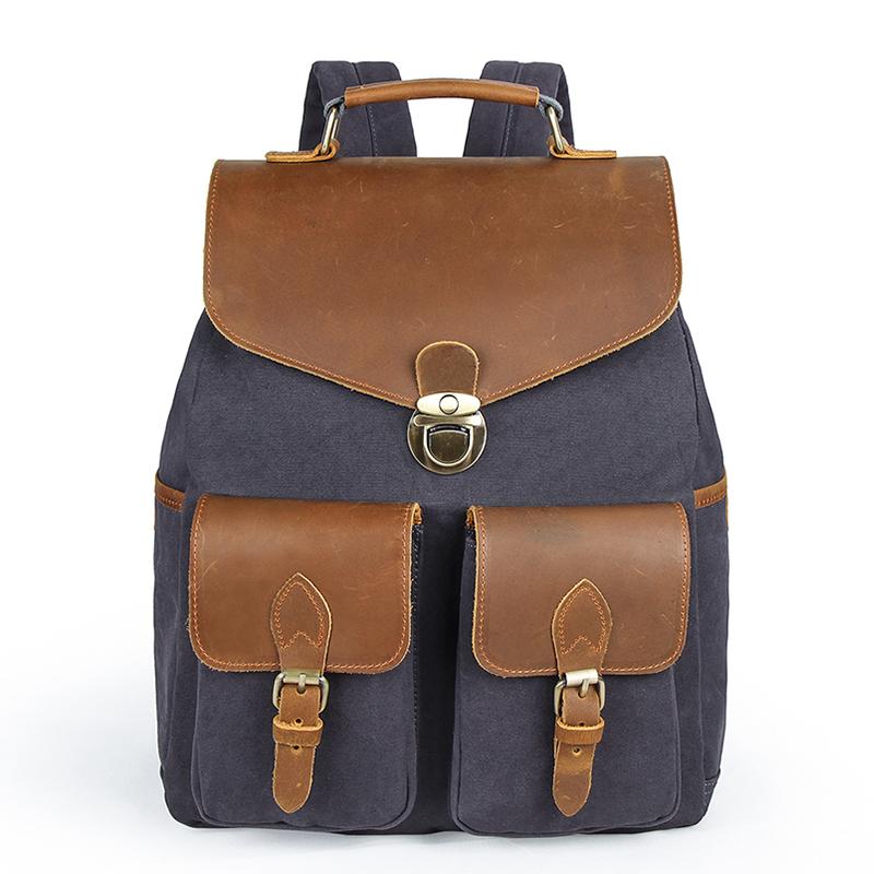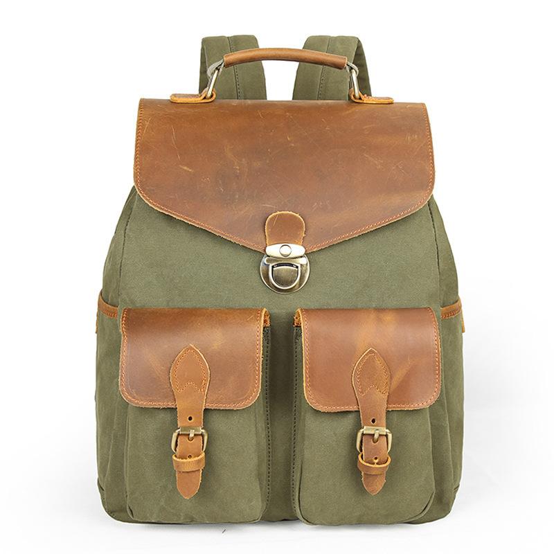 Canvas Leather Mens 14" Black Computer Backpack Green Travel Backpack Khaki College School Backpack for Men