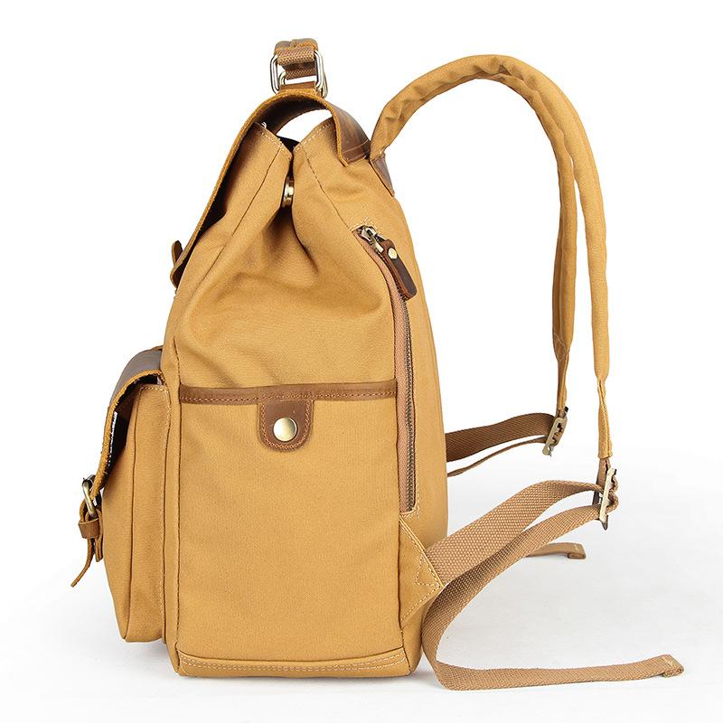 Design: Canvas Leather Mens 14" Black Computer Backpack Army Green Travel Backpack Khaki College Backpack for Men
