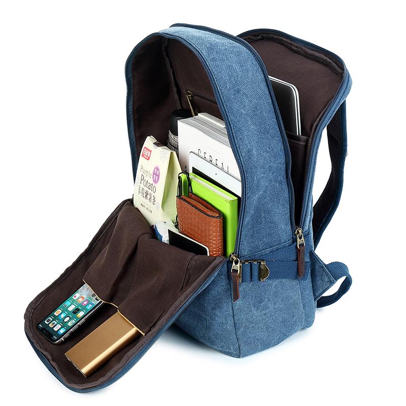 Canvas Mens 14" Black Computer Backpack Green Travel Backpack Blue College Backpack for Men