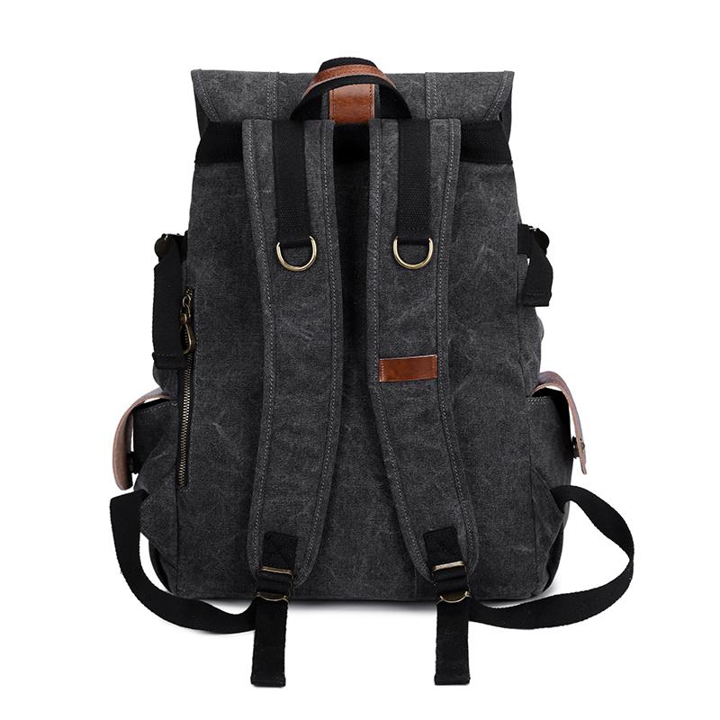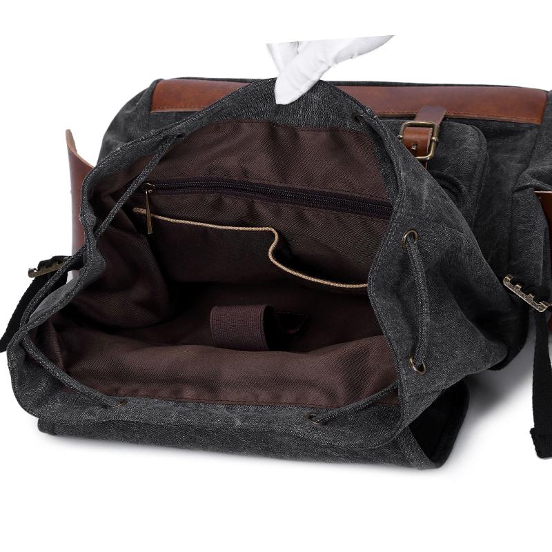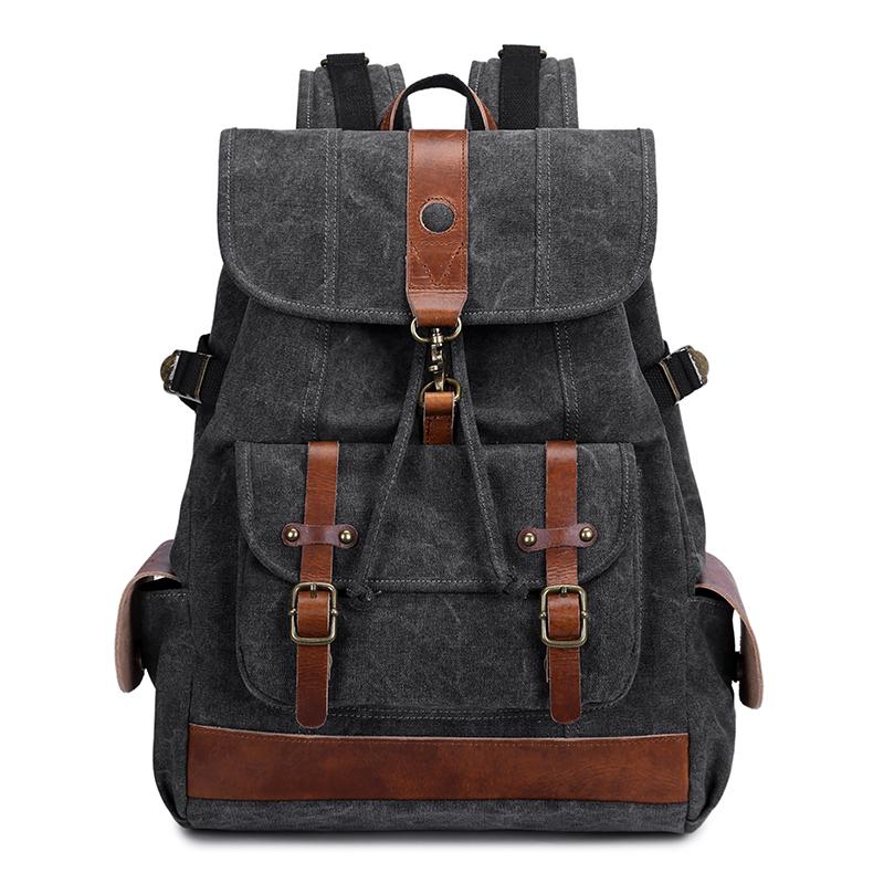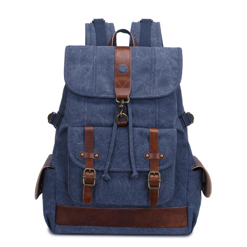 Canvas Leather Mens 15" Black Hiking Backpack Army Green Travel Backpack Blue College Backpack for Men