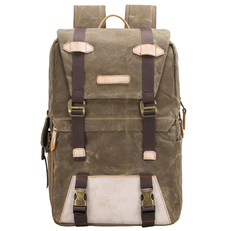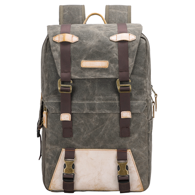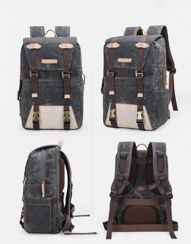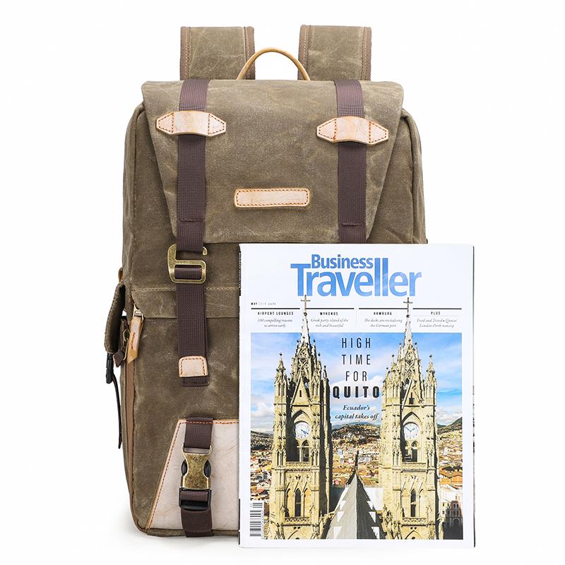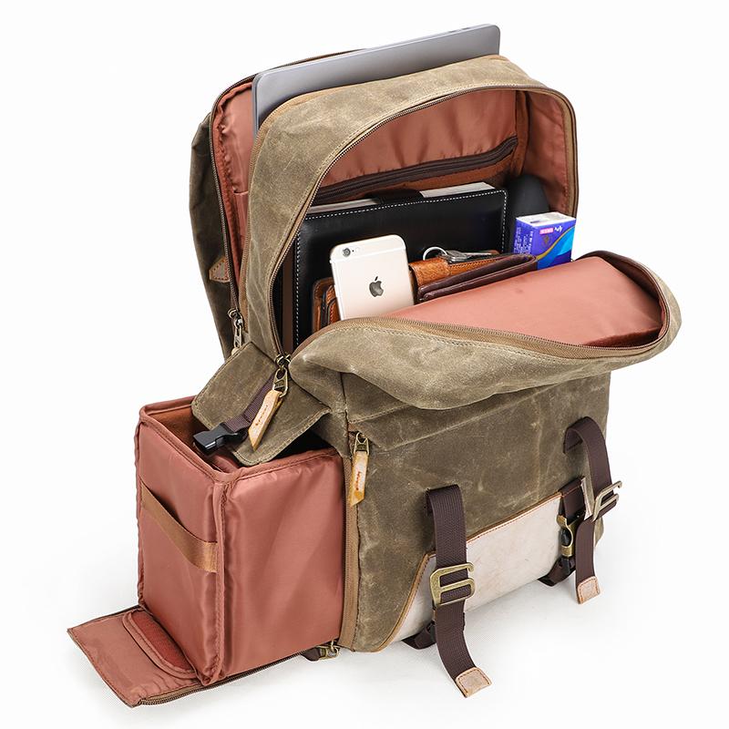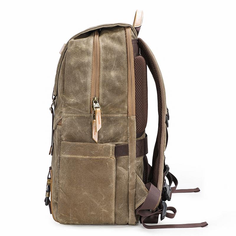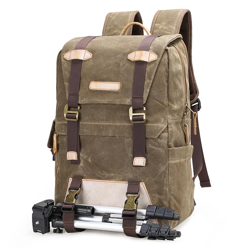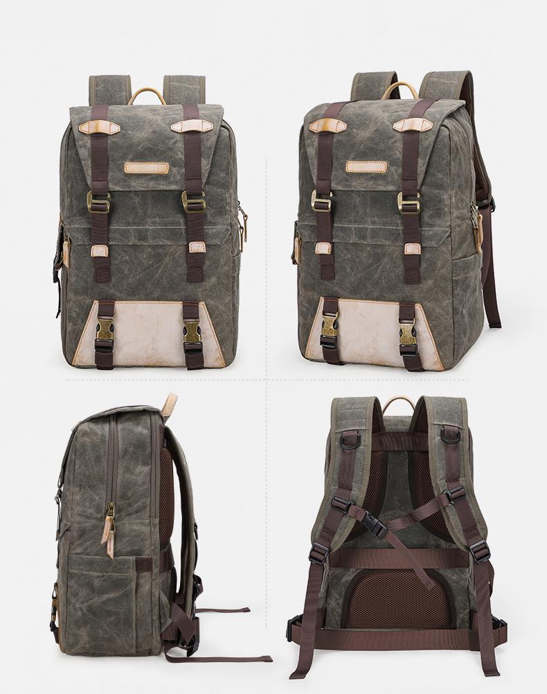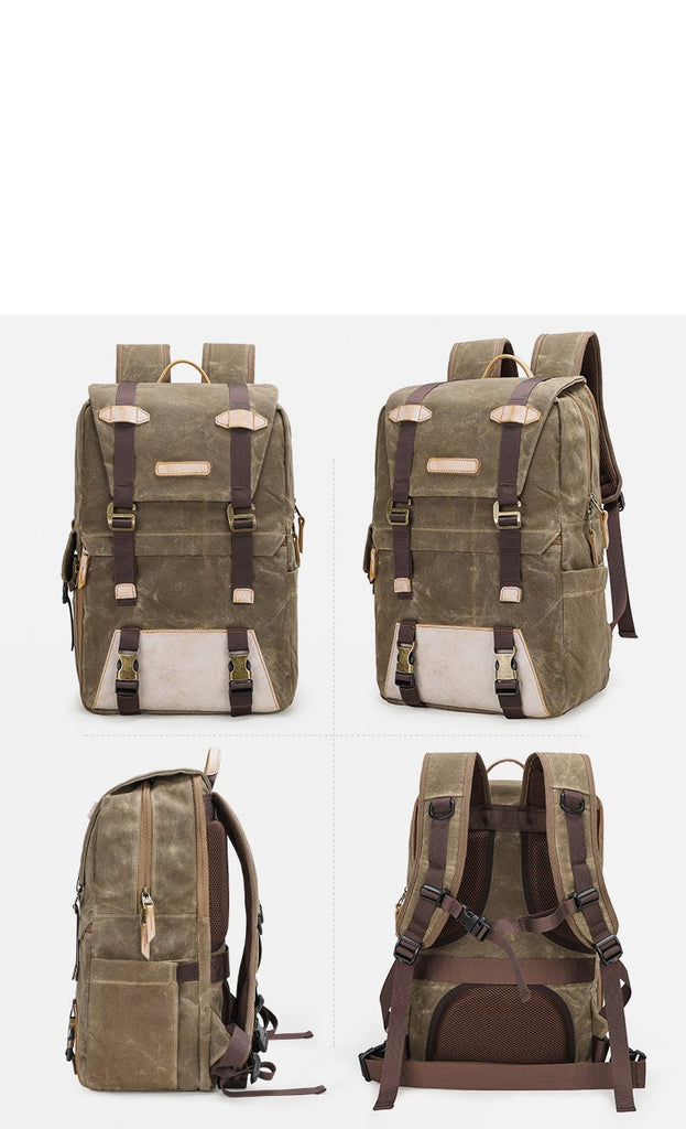 Style: Canvas Leather Mens 18" Waterproof Camera Backpack Army Green Travel Backpack Khaki College Backpack for Men
