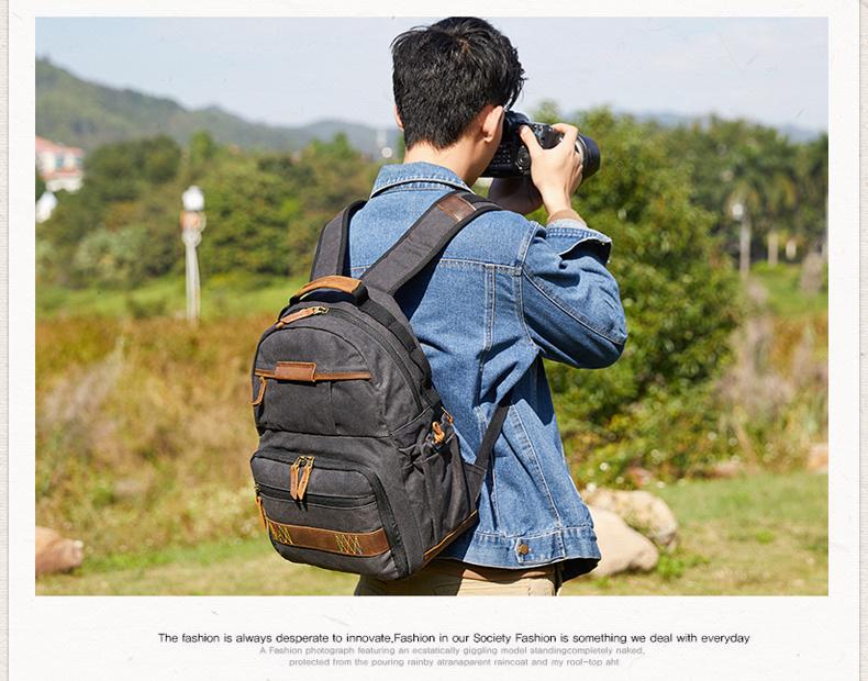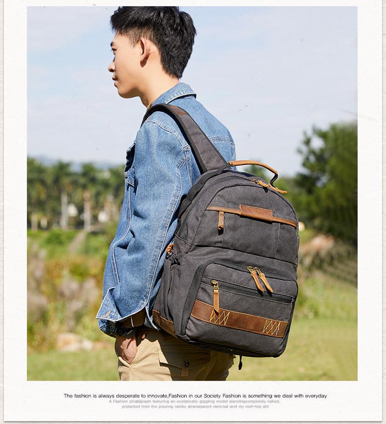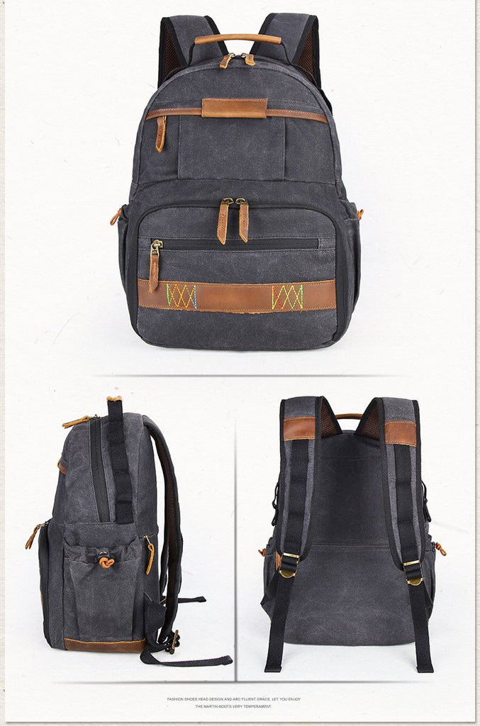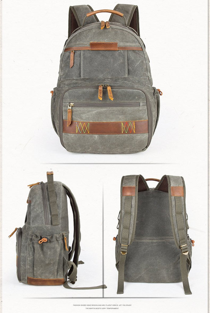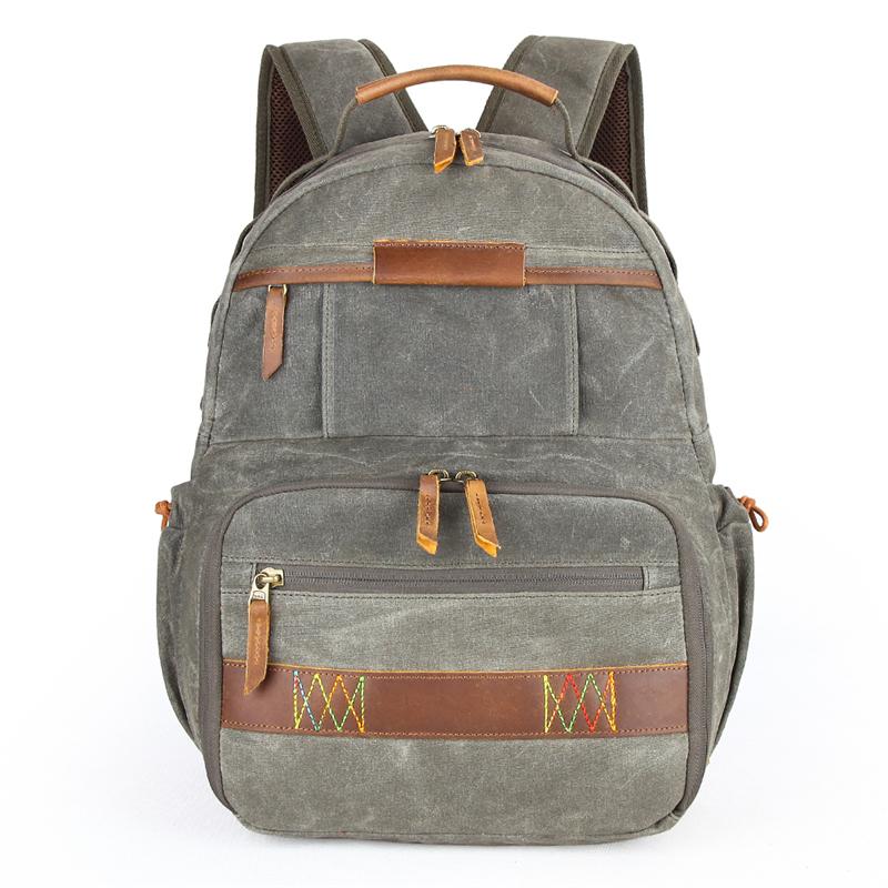 Design: Canvas Leather Mens Camera Backpack Army Green Travel Backpack Dark Gray College Backpack for Men