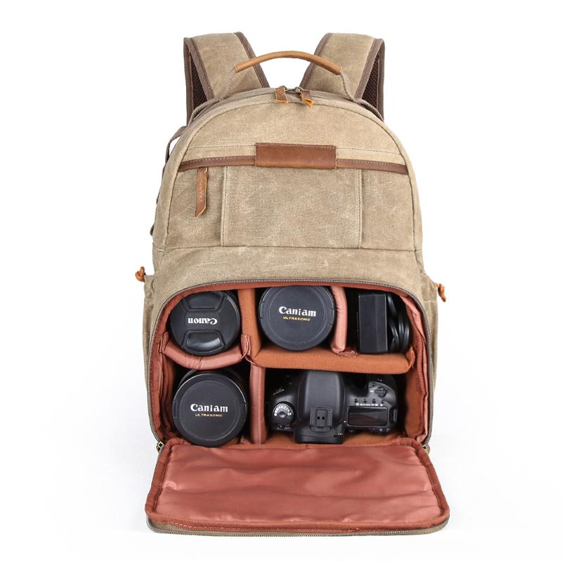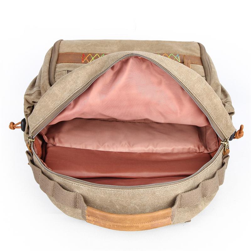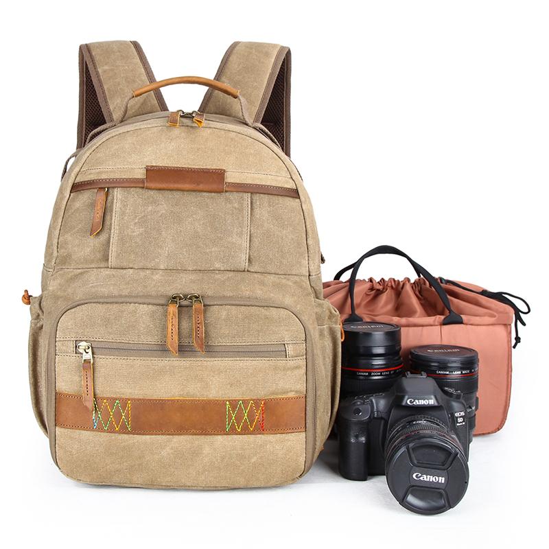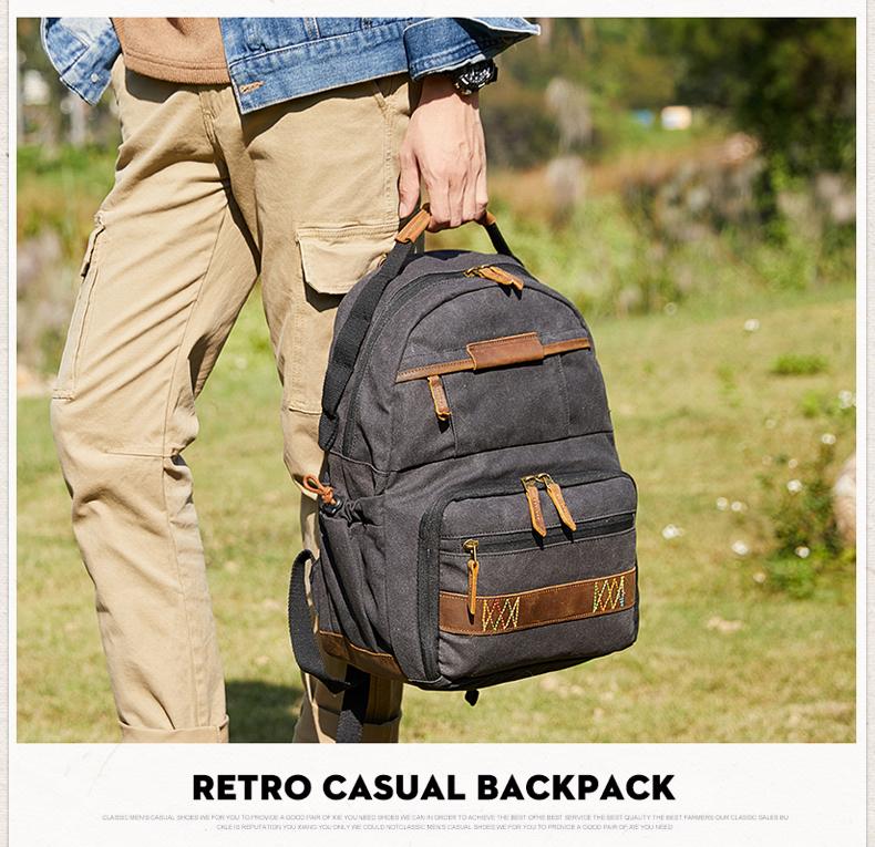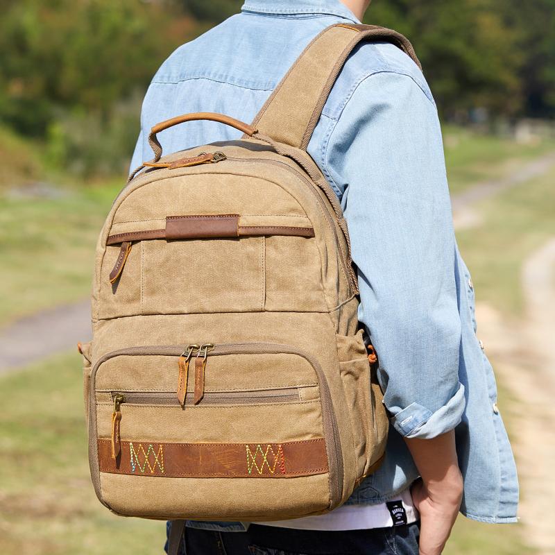 Design: Canvas Leather Mens Camera Backpack Army Green Travel Backpack Dark Gray College Backpack for Men