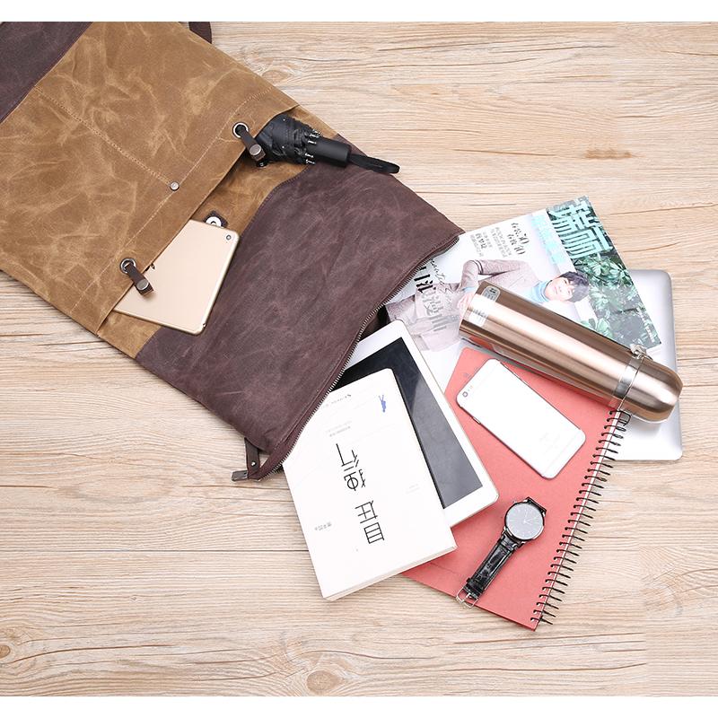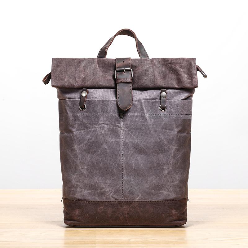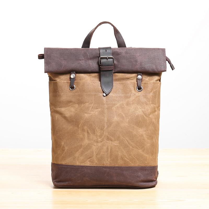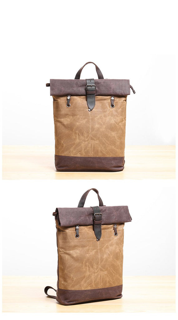 Waxed Canvas Mens Womens 14'' Travel Backpack Roll Up Backpack School Backpack for Men
