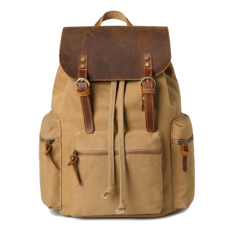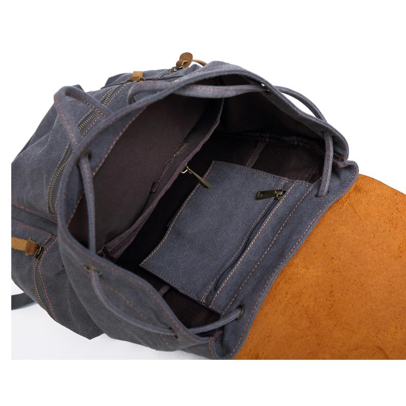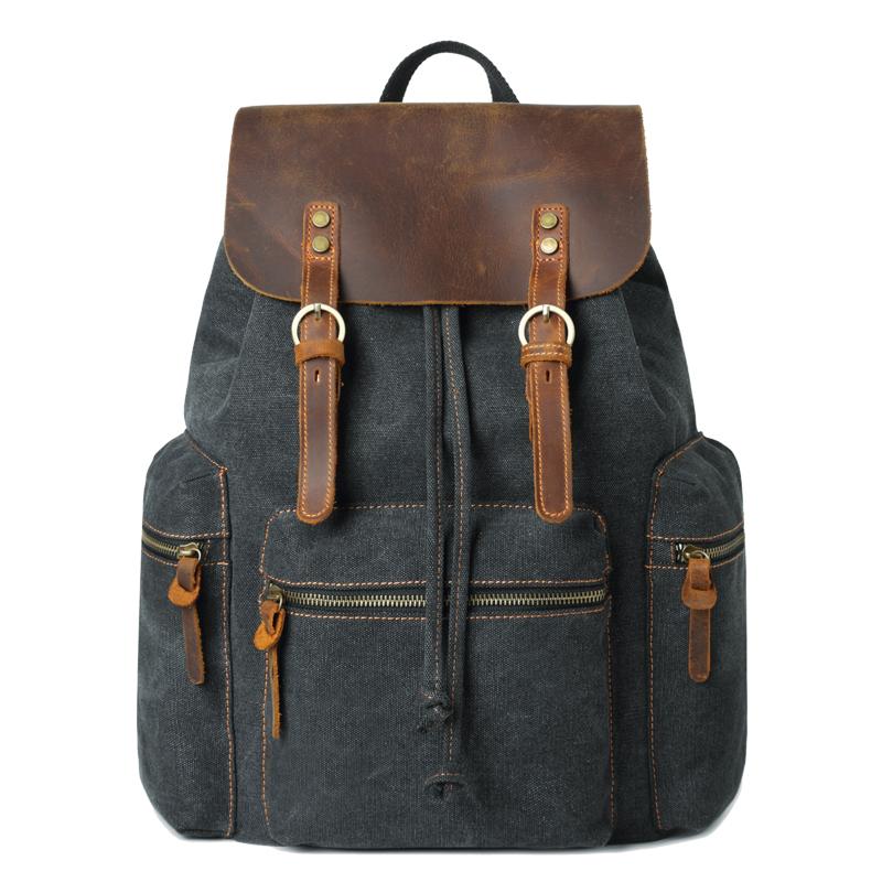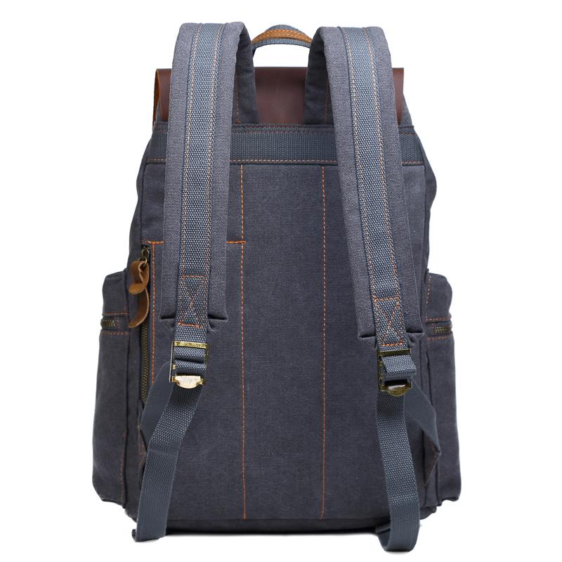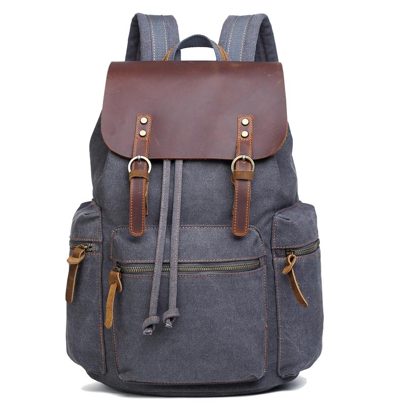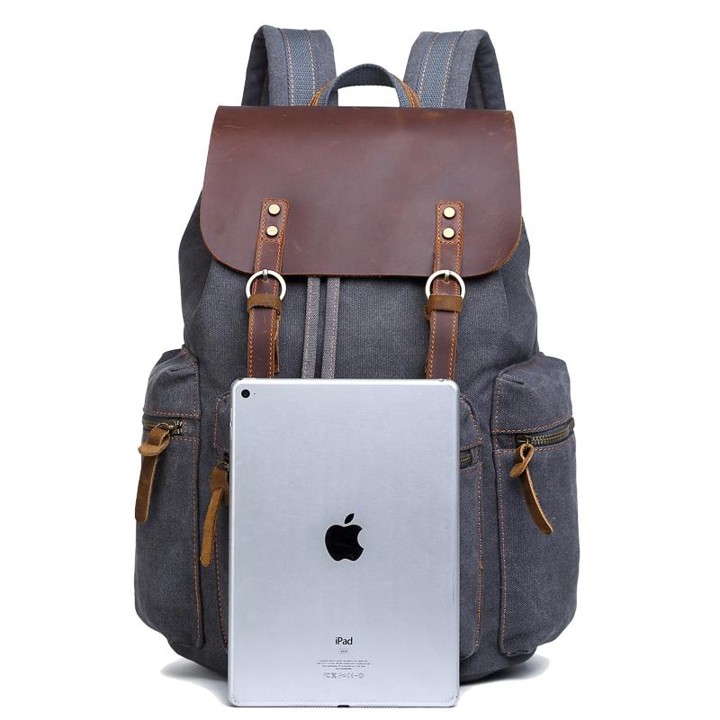 Canvas Leather Women Mens 16" Gray Travel Backpack Brown Computer Bag College Backpack for Men