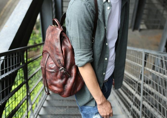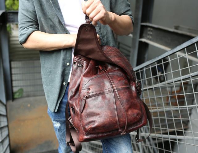 Design: Coffee Leather Mens Backpack Travel Backpack Laptop Backpacks for men