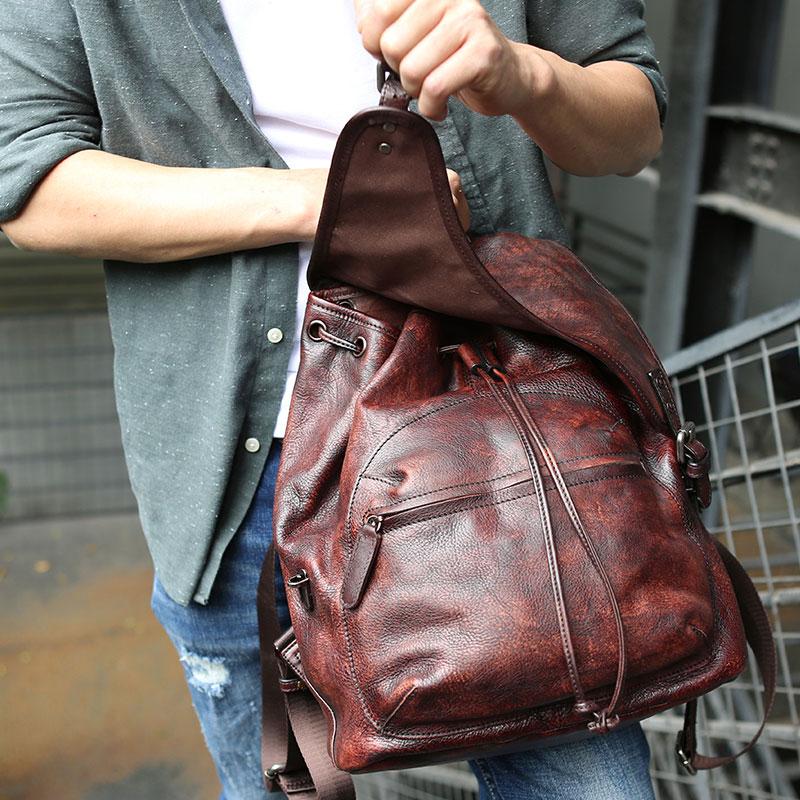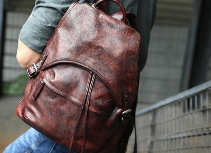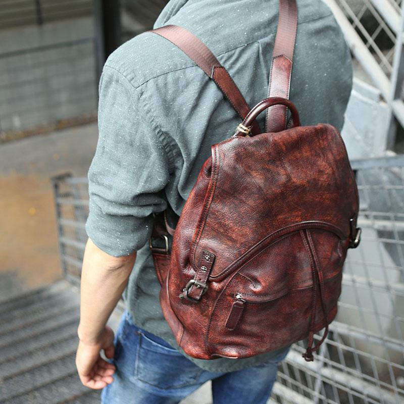 Style: Coffee Leather Mens Backpack Travel Backpack Laptop Backpacks for men