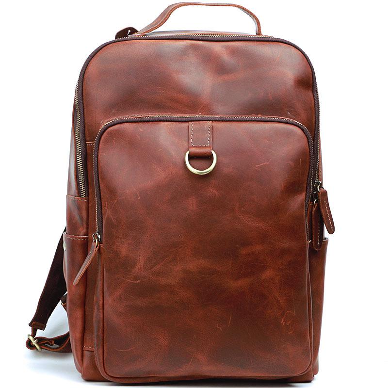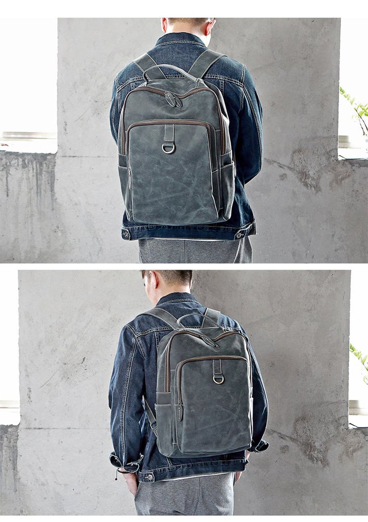 Design: Cool Black Leather Mens Travel Backpack Work Handbags 14 inches Work Backpack For Men
