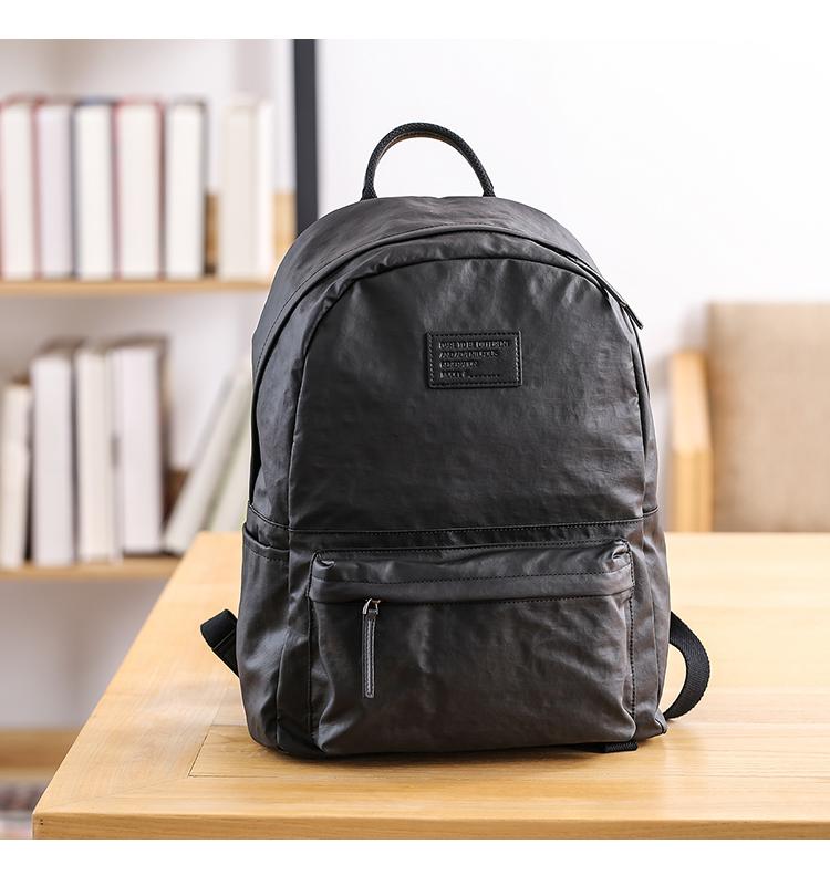 Design: Cool Black Nylon Backpack Men's 14 inches Waterproof Backpack School Bag For Men