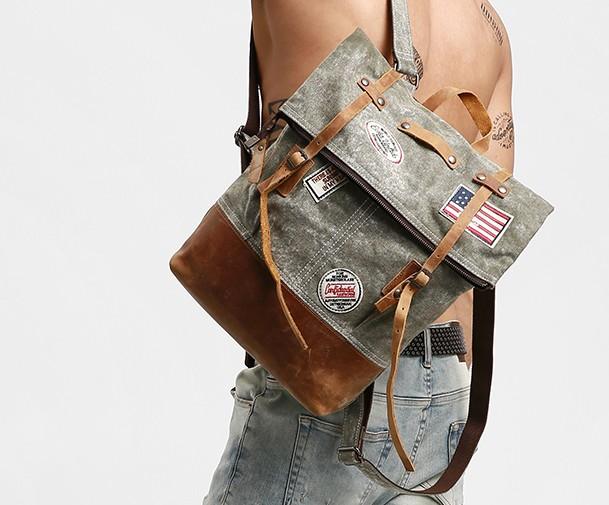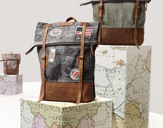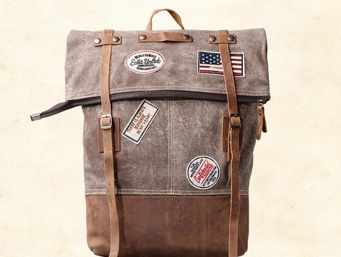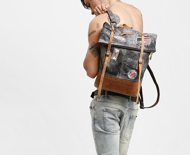 Style: Canvas Gray Mens Cool Backpack Canvas Travel Bag Canvas School Bag for Men