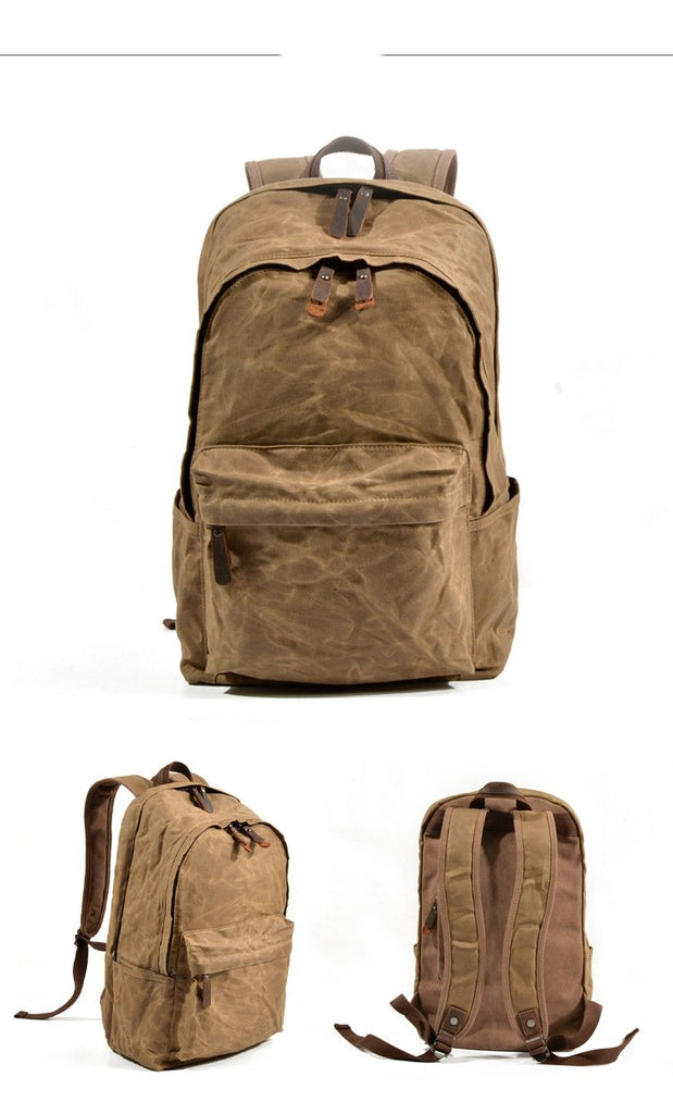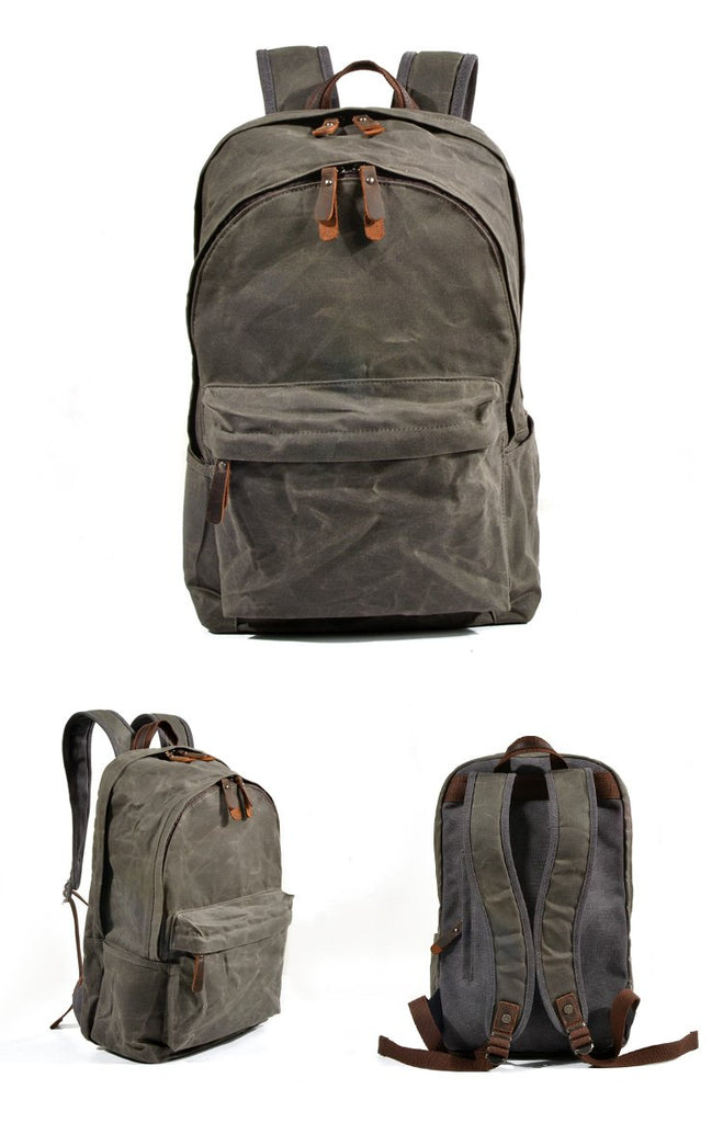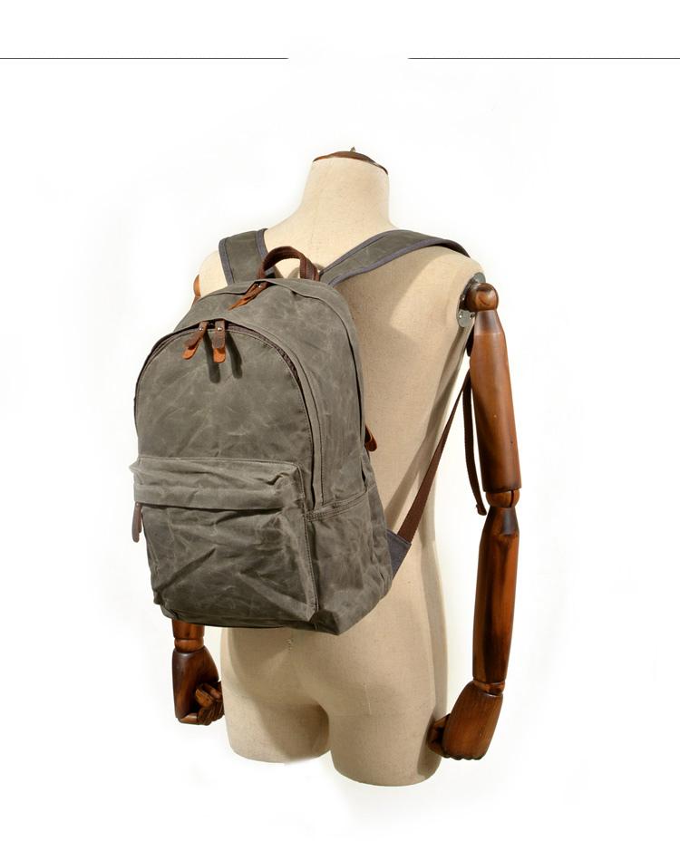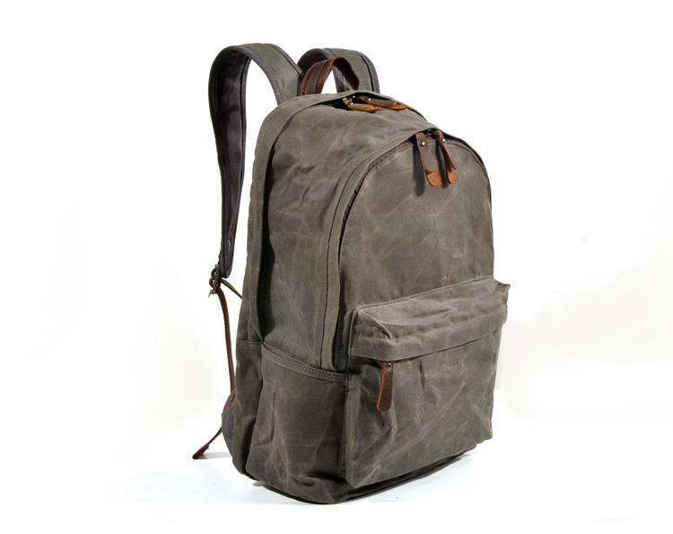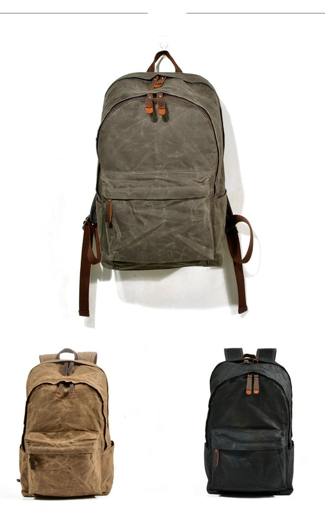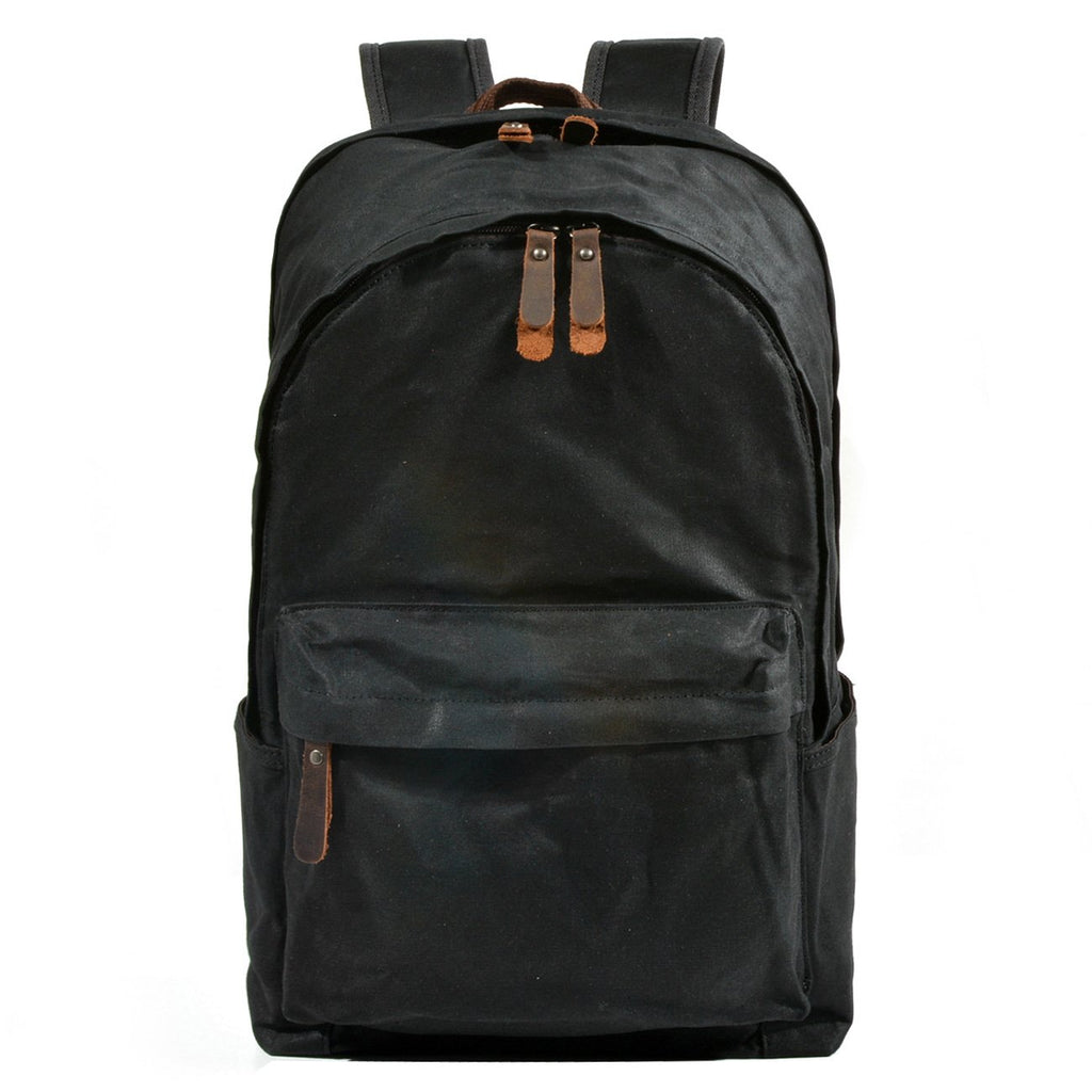 Style: Waxed Canvas Mens Large College 14'' Computer Black Backpack Travel Backpack for Men