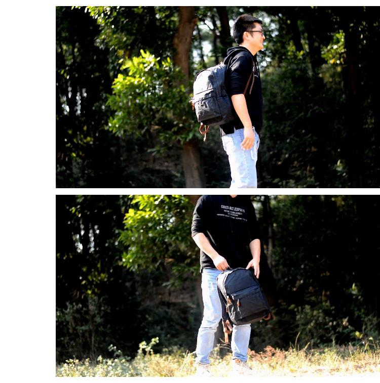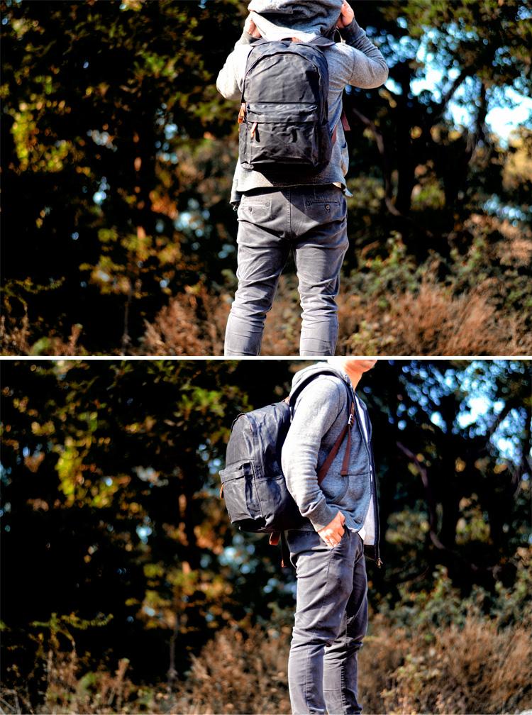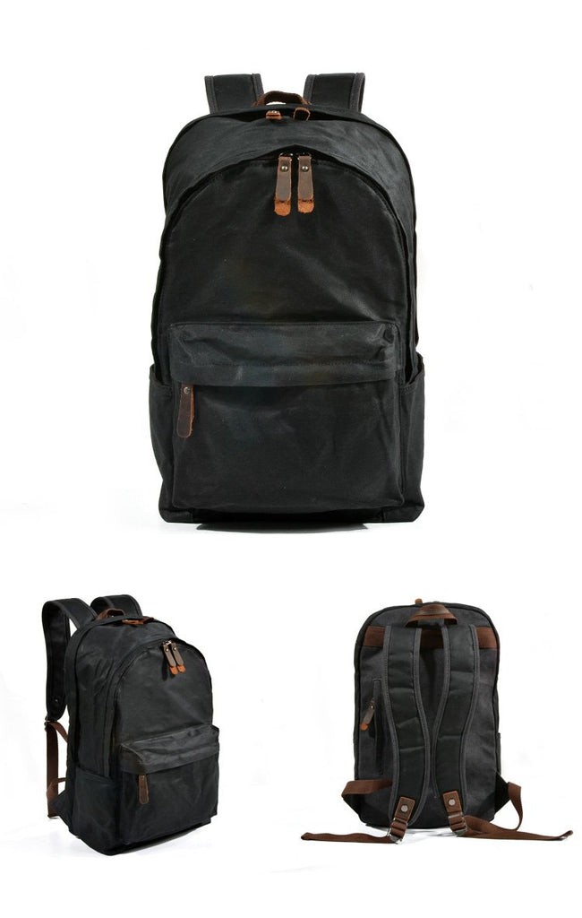 Design: Waxed Canvas Mens Large College 14'' Computer Black Backpack Travel Backpack for Men