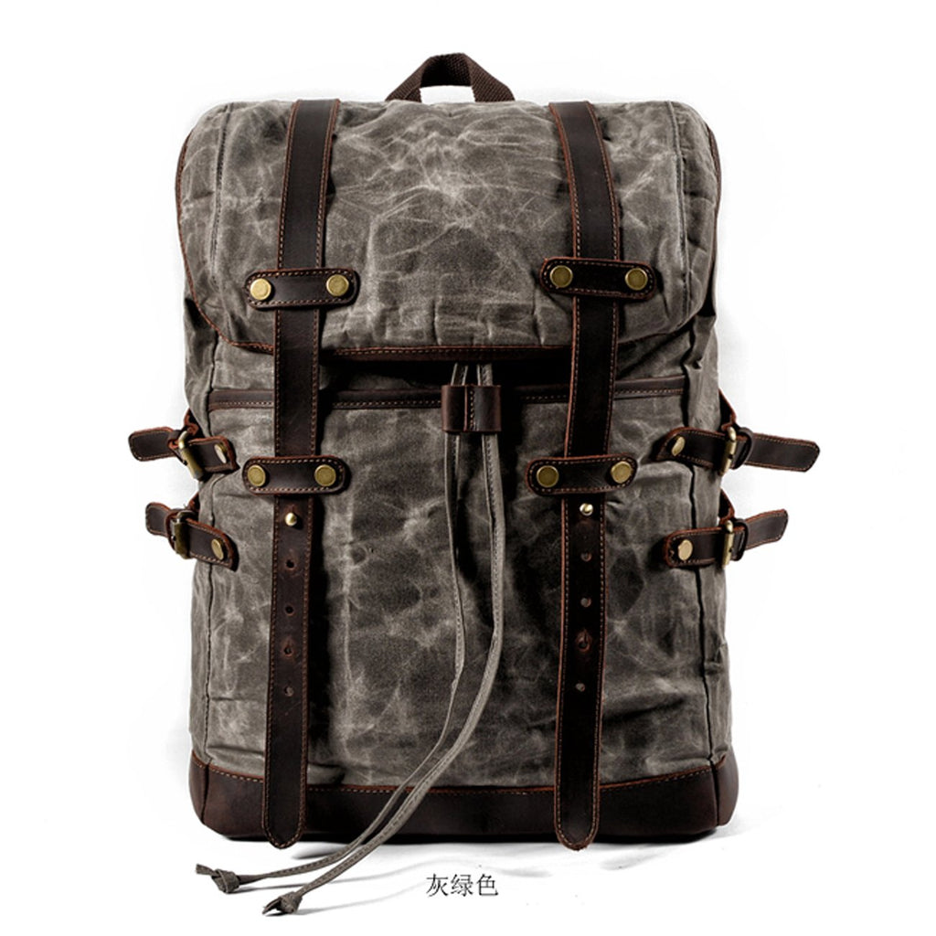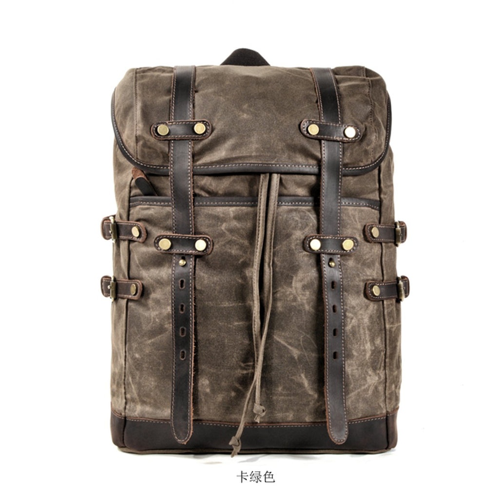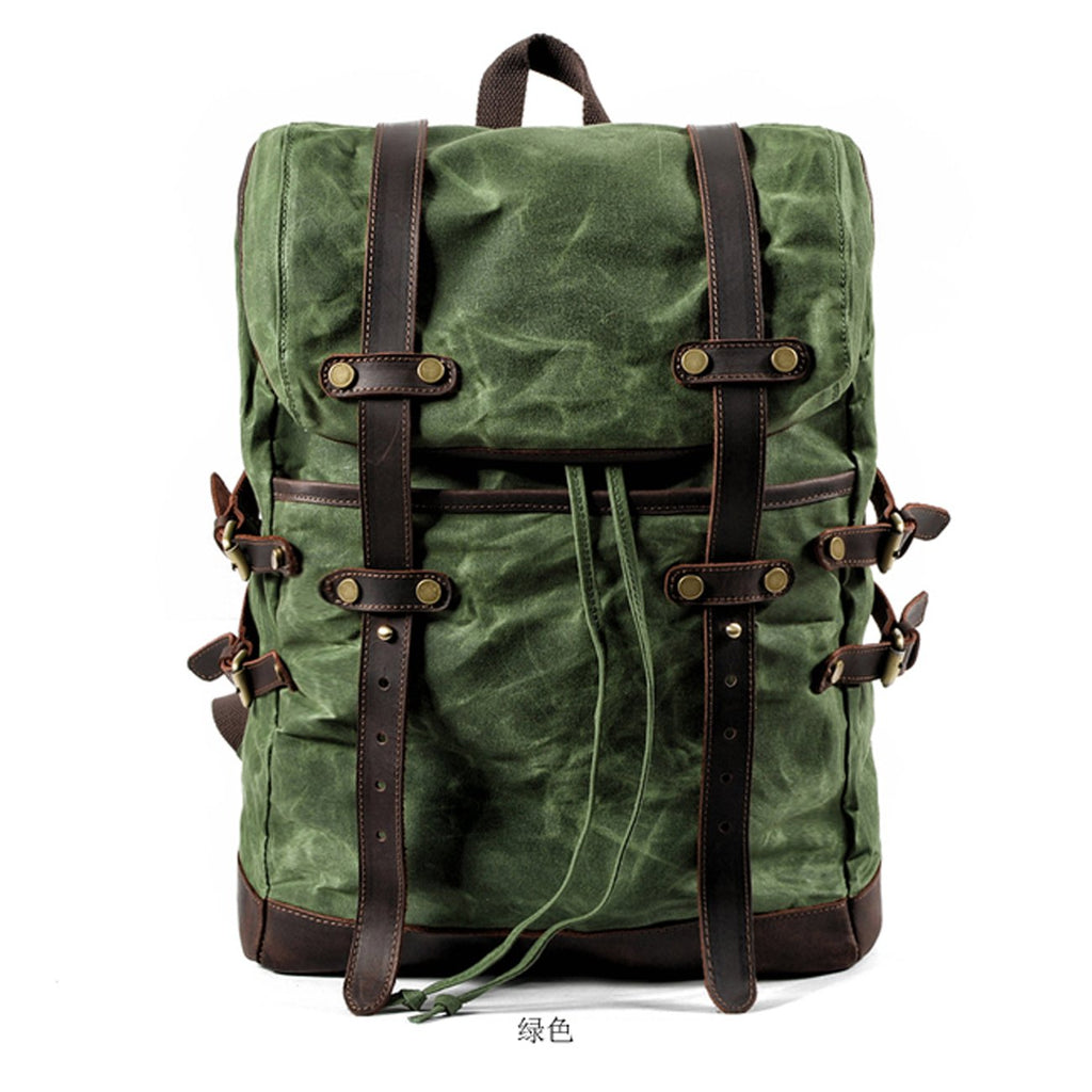 Design: Cool Canvas Leather Mens Sports Bag Computer Backpack Green Hiking Backpack Travel Backpack for Men
