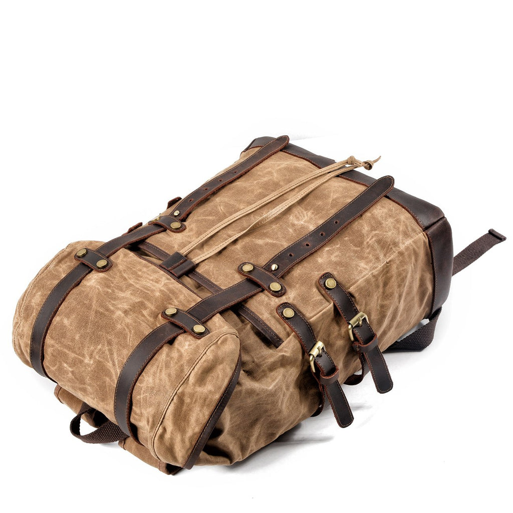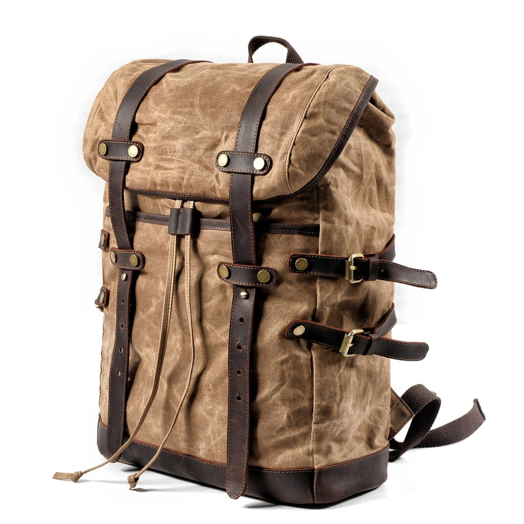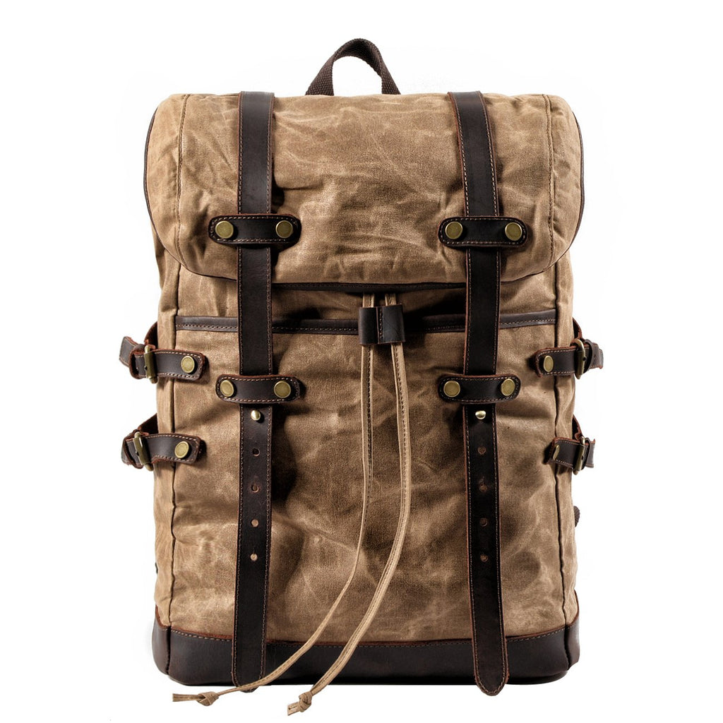 Design: Cool Canvas Leather Mens Sports Bag Computer Backpack Green Hiking Backpack Travel Backpack for Men